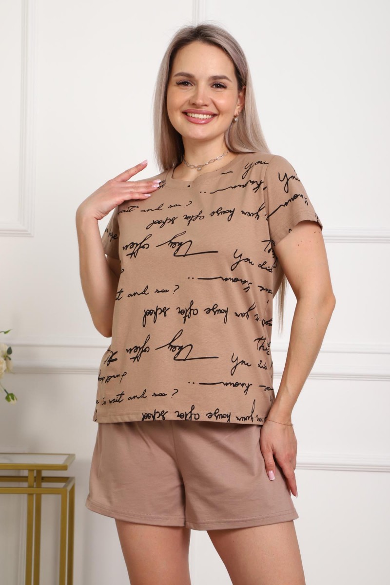Костюм двойка женский 01077 кулирка (р-ры: 44-56) капучино