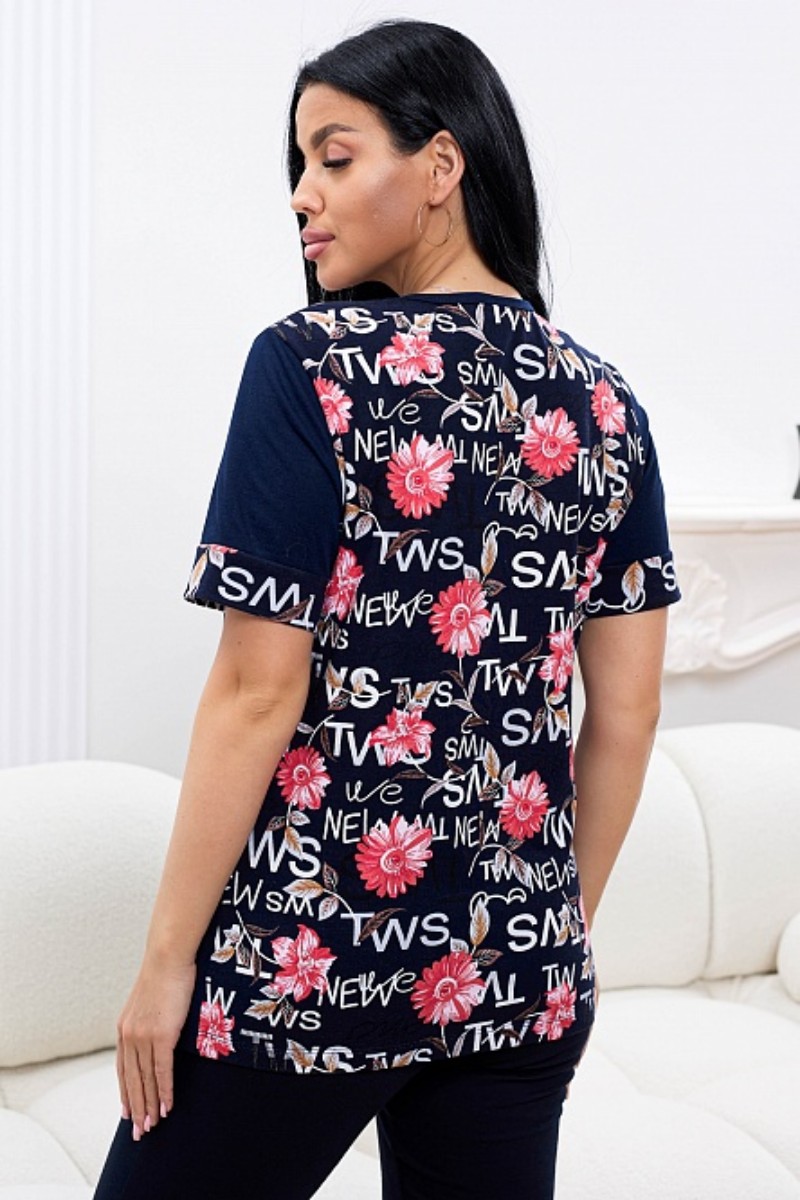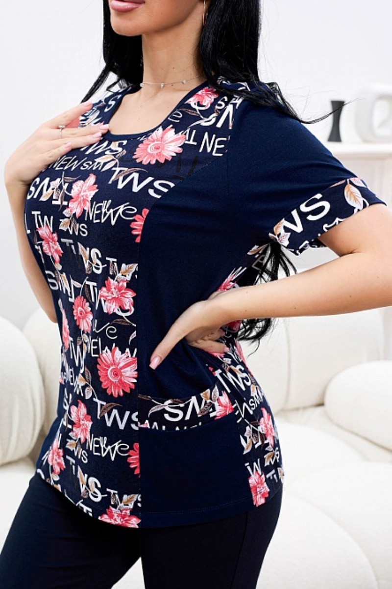 Представляем Вашему вниманию трикотажную женскую футболку с карманами и декоративными вставками с набивным рисунком. Футболка с рельефными швами, которые создают стройный силуэт Вашей фигуры, но в то же время обеспечивают максимум комфорта в применении.