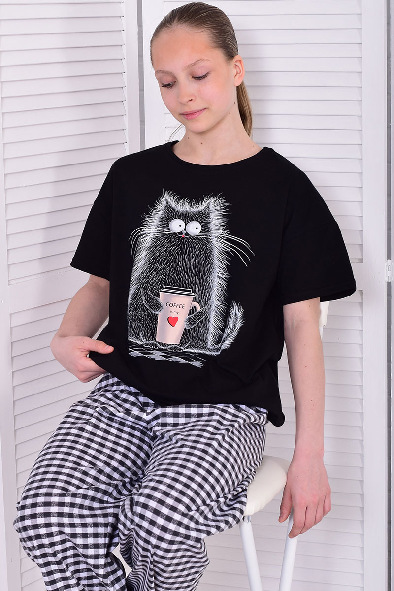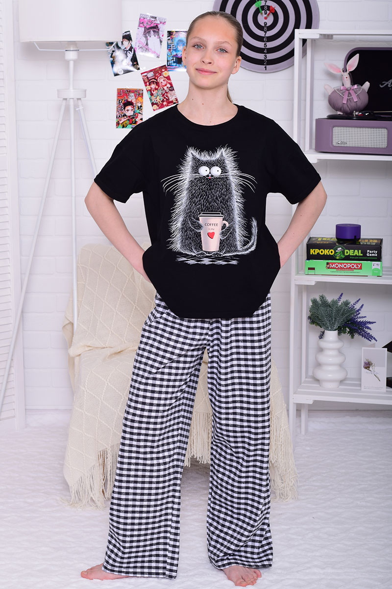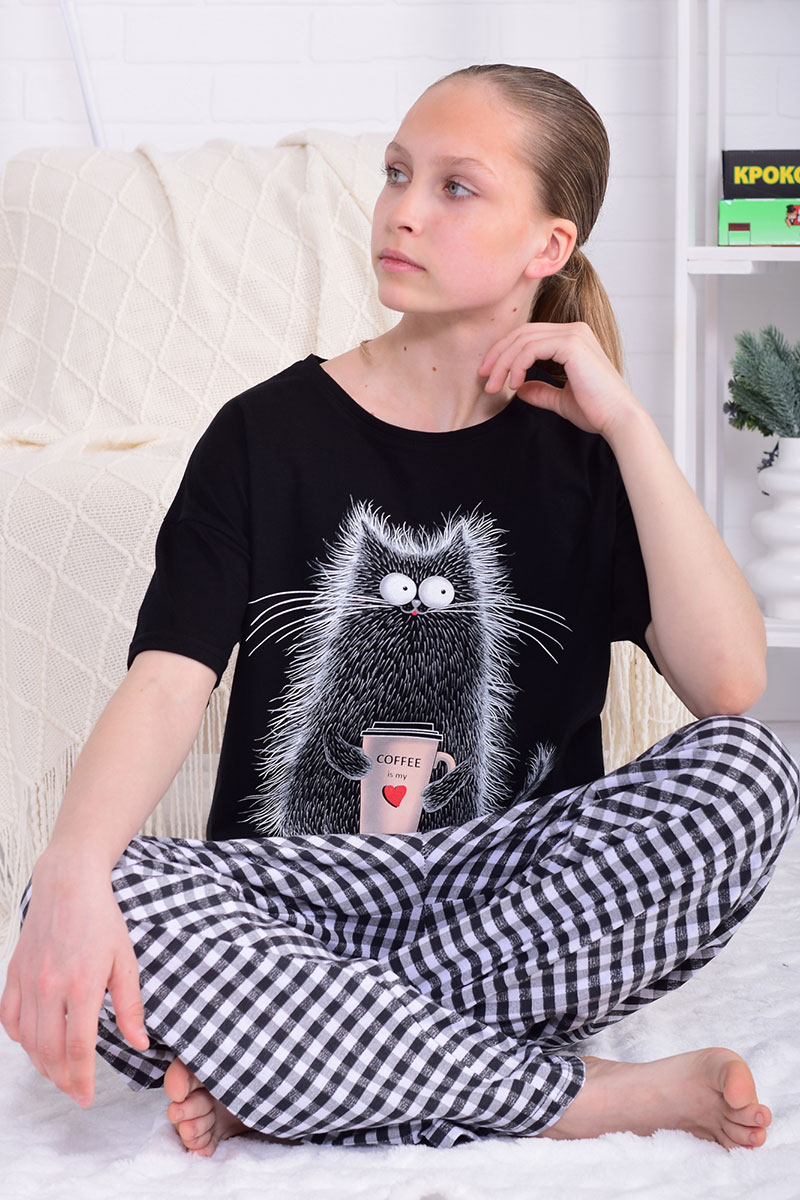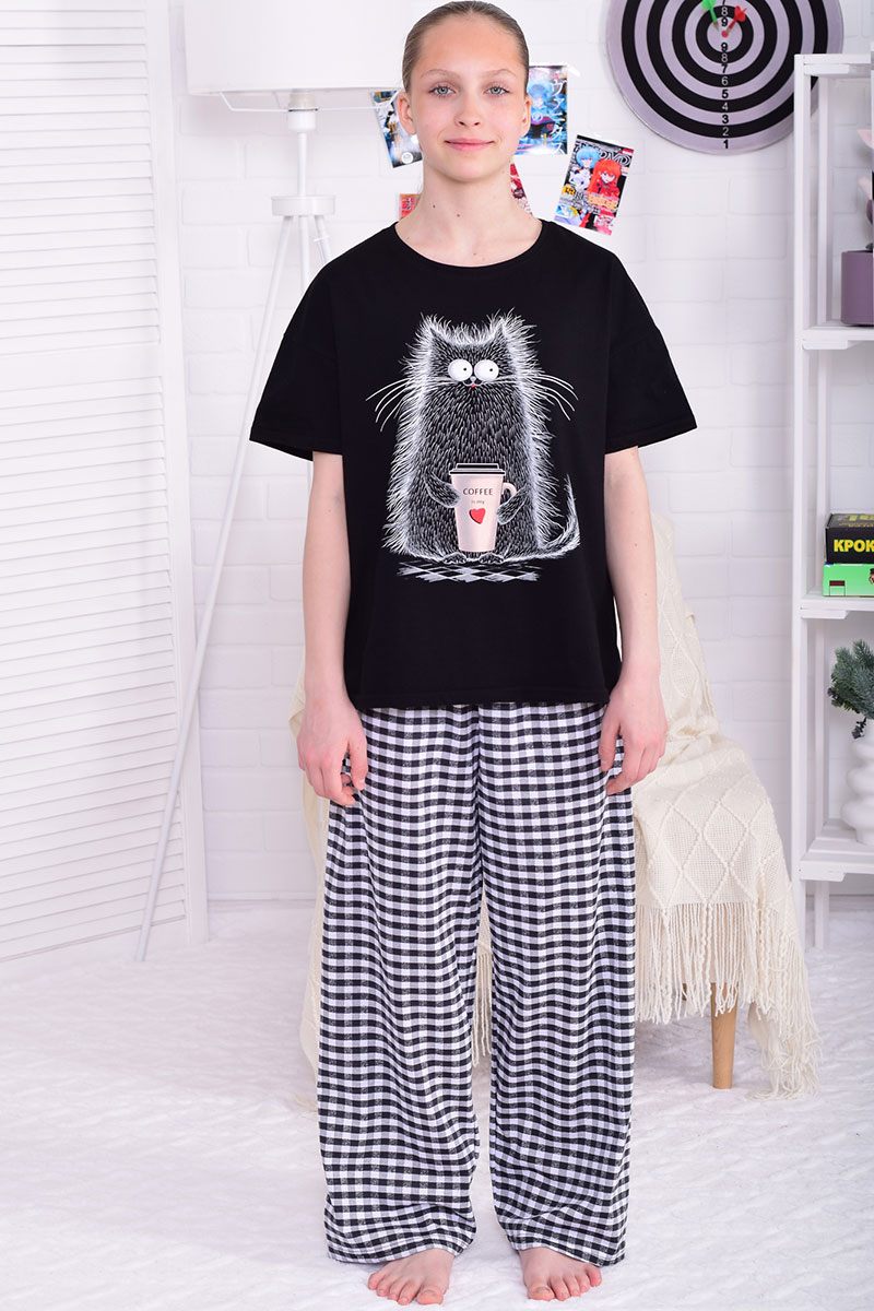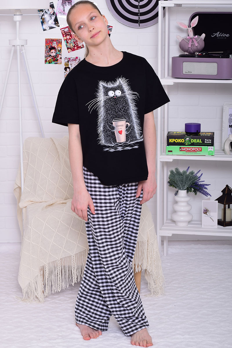 Пижама подростковая 12112 кулирка (р-ры: 36-44) черный