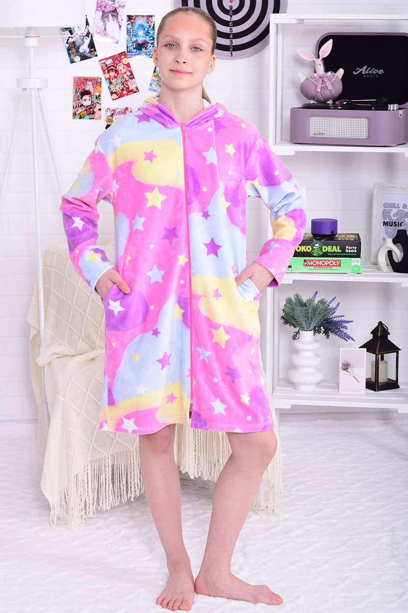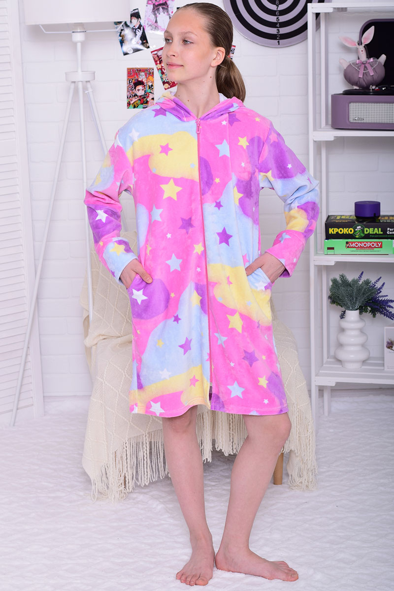 Халат подростковый 12113 велюр (р-ры: 34-46) розовый