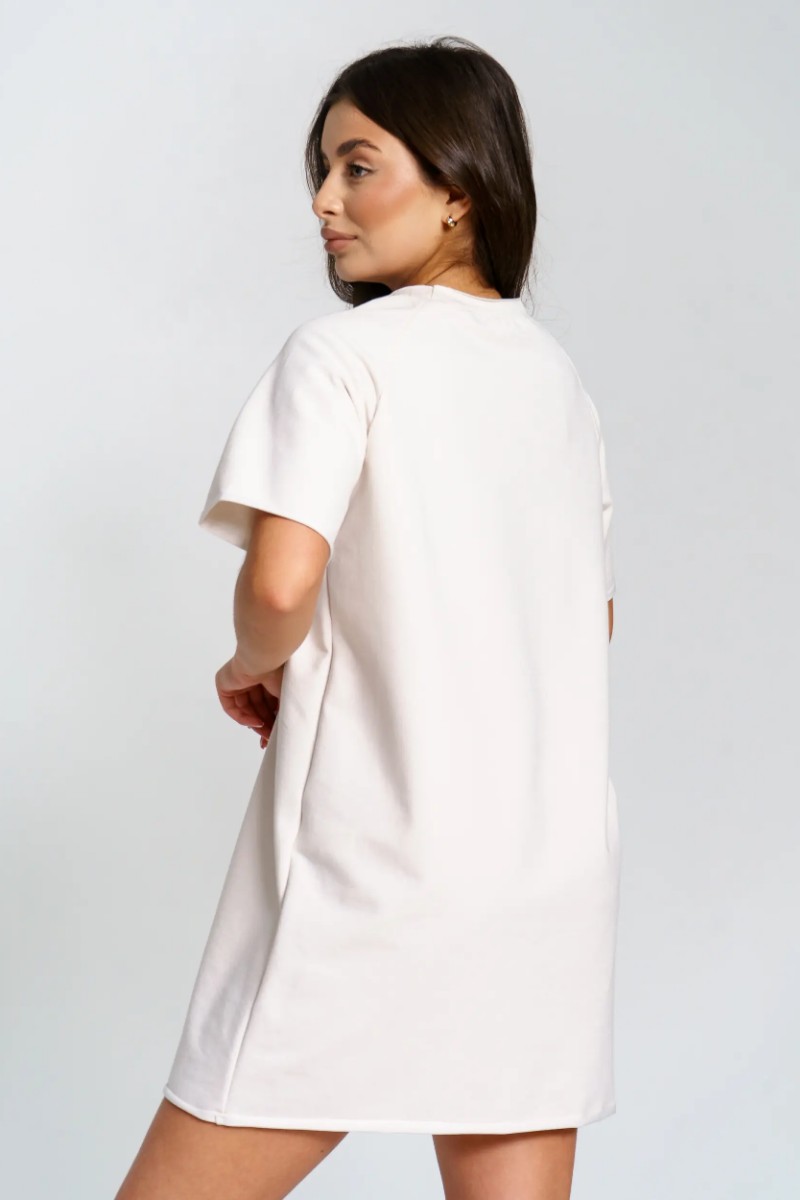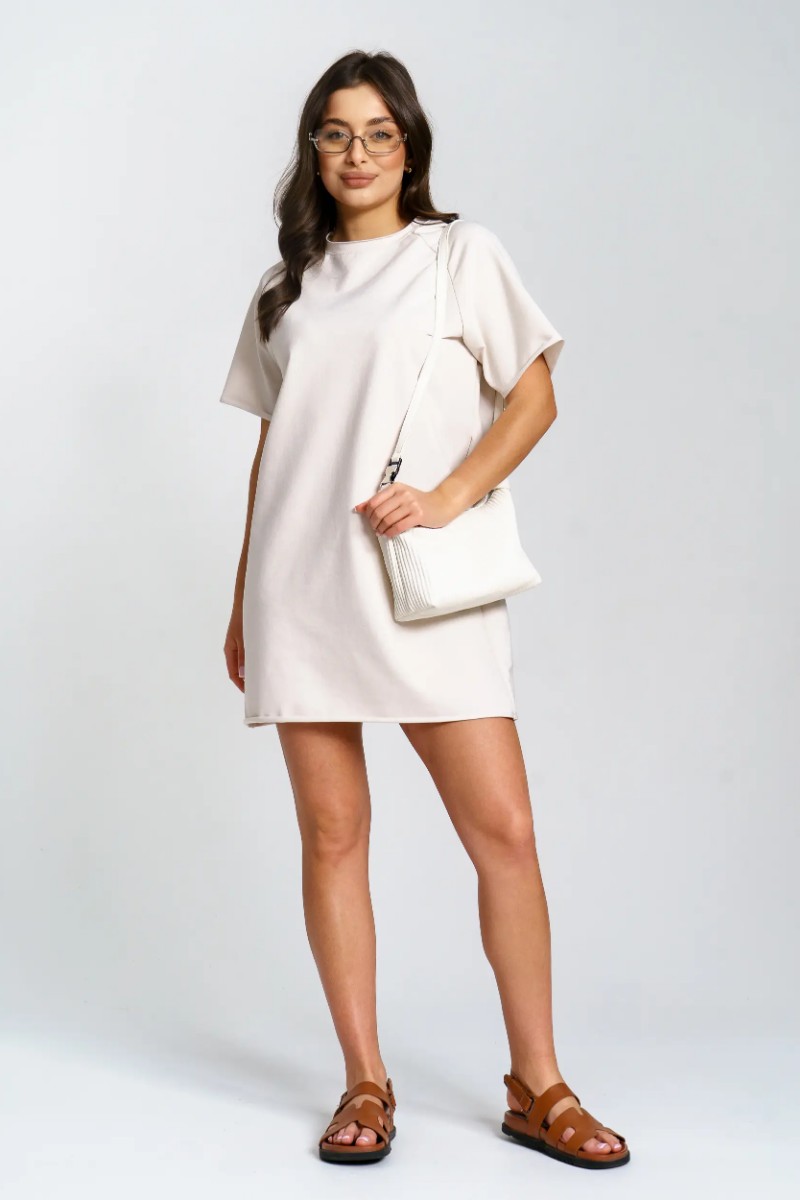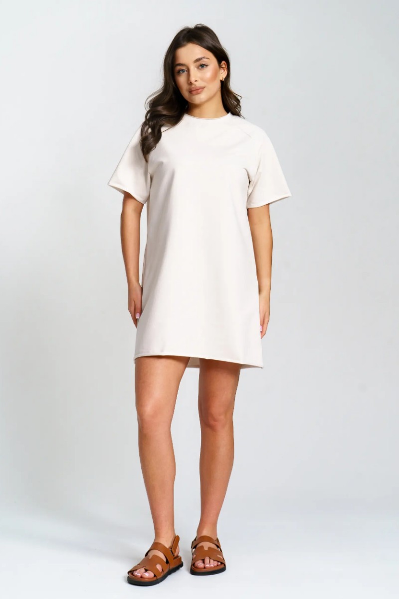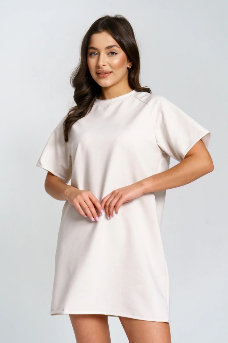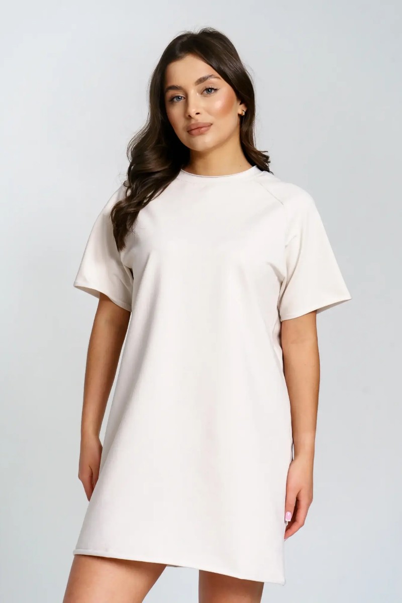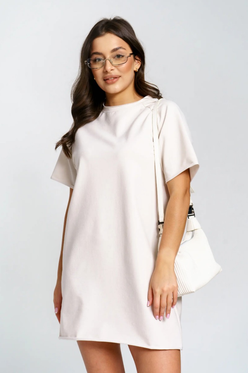 Представляем Вашему вниманию женское короткое платье-футболку, сшитое из футера 2-х нитки. Современное короткое платье-футболка — стильный и удобный выбор для любого случая. Модель отличается лаконичным дизайном и модными декоративными необработанными краями по низу платья и рукавов, что добавляет образу актуальности и легкой небрежности. Универсальная длина и свободный крой подходят разным типам фигуры. Размерный ряд от 44 до 54 позволяет выбрать оптимальный вариант. Платье отлично сочетается с кедами или кроссовками, подходит для прогулок, отдыха и городской жизни.