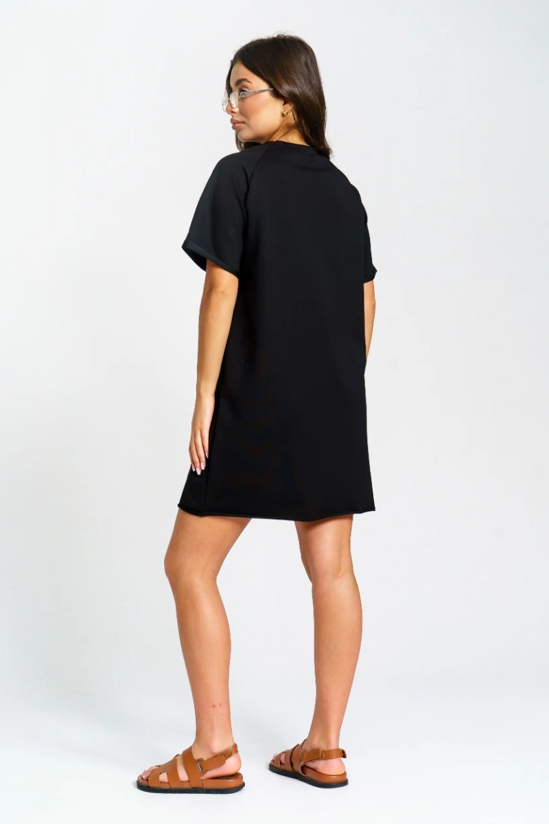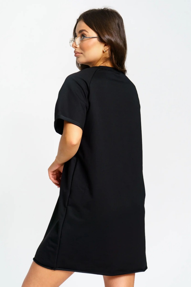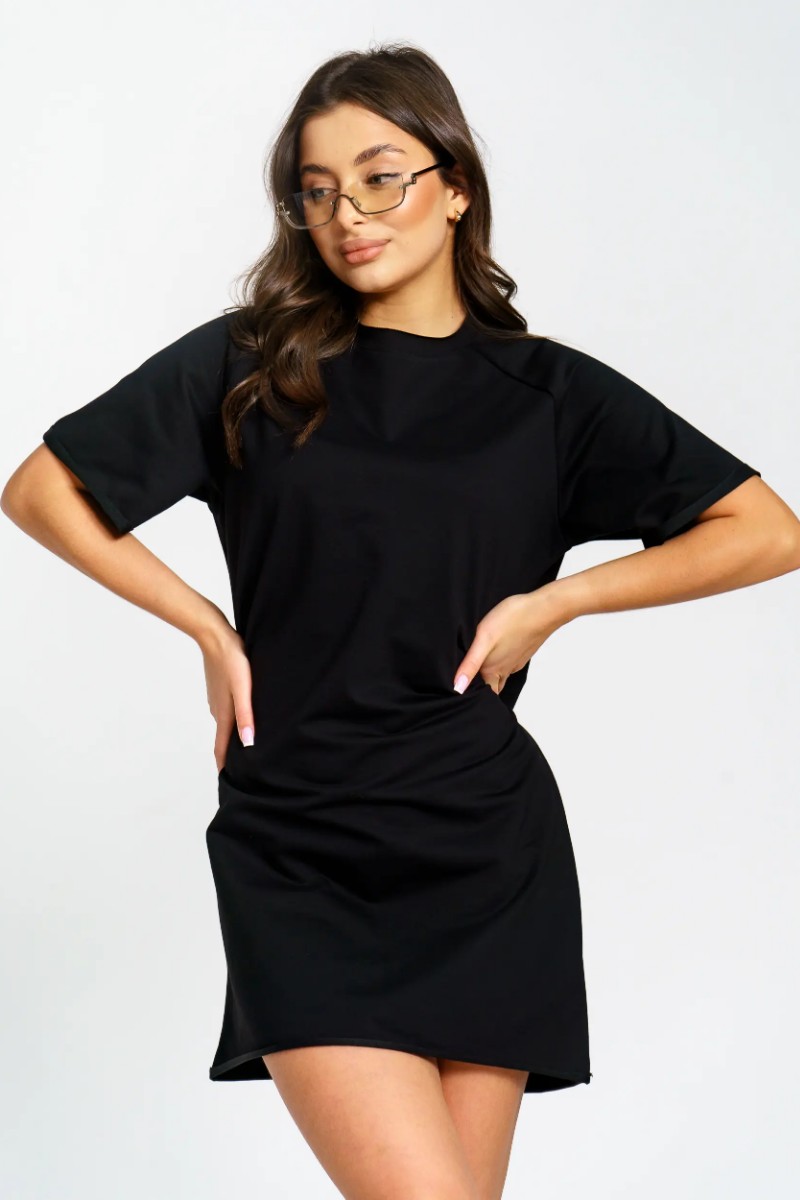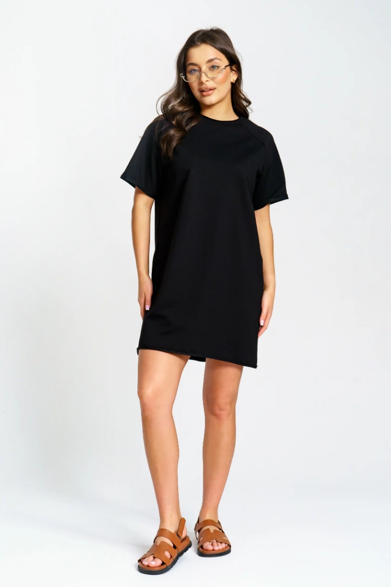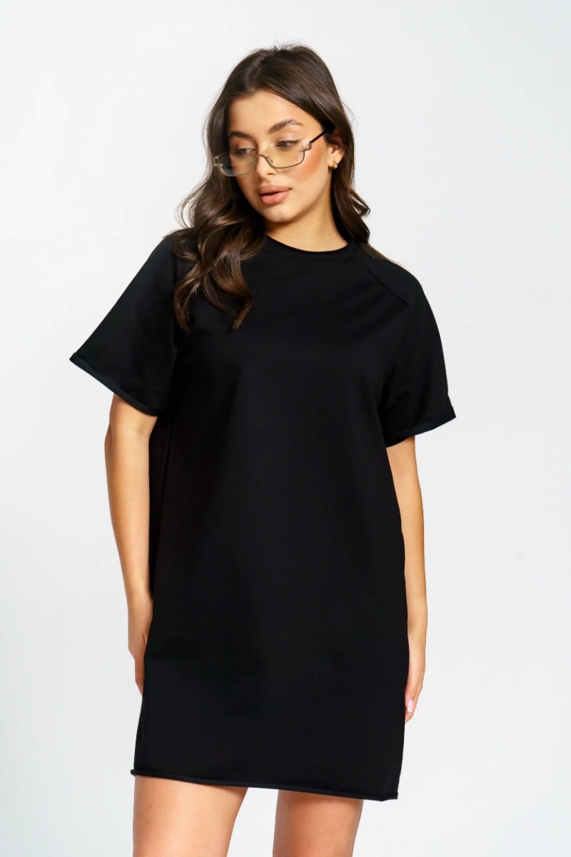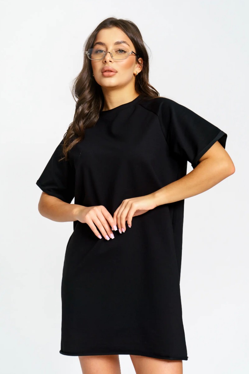 Представляем Вашему вниманию женское короткое платье-футболку, сшитое из футера 2-х нитки. Современное короткое платье-футболка — стильный и удобный выбор для любого случая. Модель отличается лаконичным дизайном и модными декоративными необработанными краями по низу платья и рукавов, что добавляет образу актуальности и легкой небрежности. Универсальная длина и свободный крой подходят разным типам фигуры. Размерный ряд от 44 до 54 позволяет выбрать оптимальный вариант. Платье отлично сочетается с кедами или кроссовками, подходит для прогулок, отдыха и городской жизни.