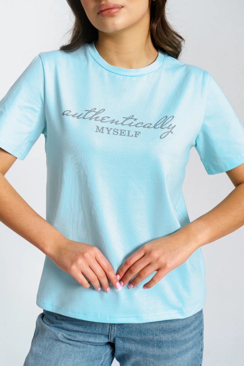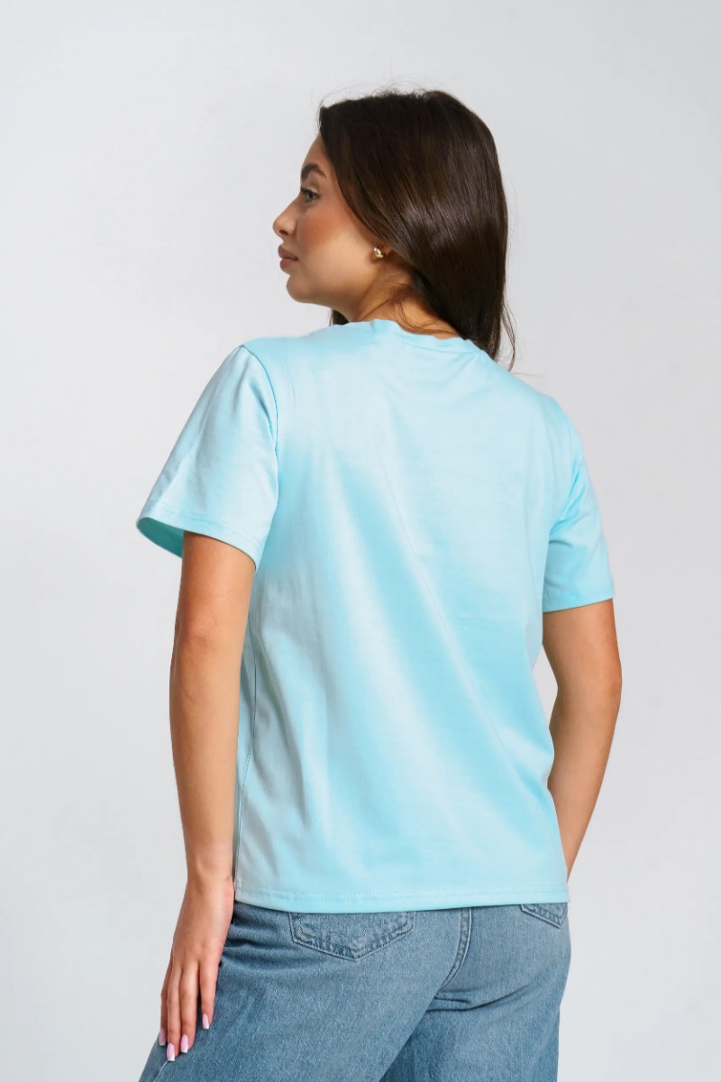 Представляем Вашему вниманию женскую однотонную футболку с минималистичной печатью на груди. Модель выполнена из качественного материала (95% хлопок, 5% лайкра), что обеспечивает ей приятную тактильность и легкую эластичность. Эта футболка легко сочетается как с джинсами и брюками, так и с юбками и шортами, идеально подходит для повседневного гардероба и прогулок.