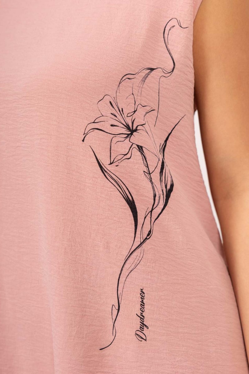 Представляем Вашему вниманию женское платье из жатки - идеальное решение для жарких дней, сочетающее в себе комфорт, стиль и практичность. Удобное платье свободного кроя А-силуэта, с О-образной горловиной и двумя разрезами по бокам. Спереди выполнена печать в минималистичном стиле.