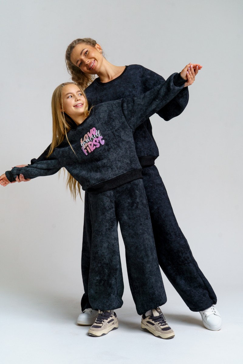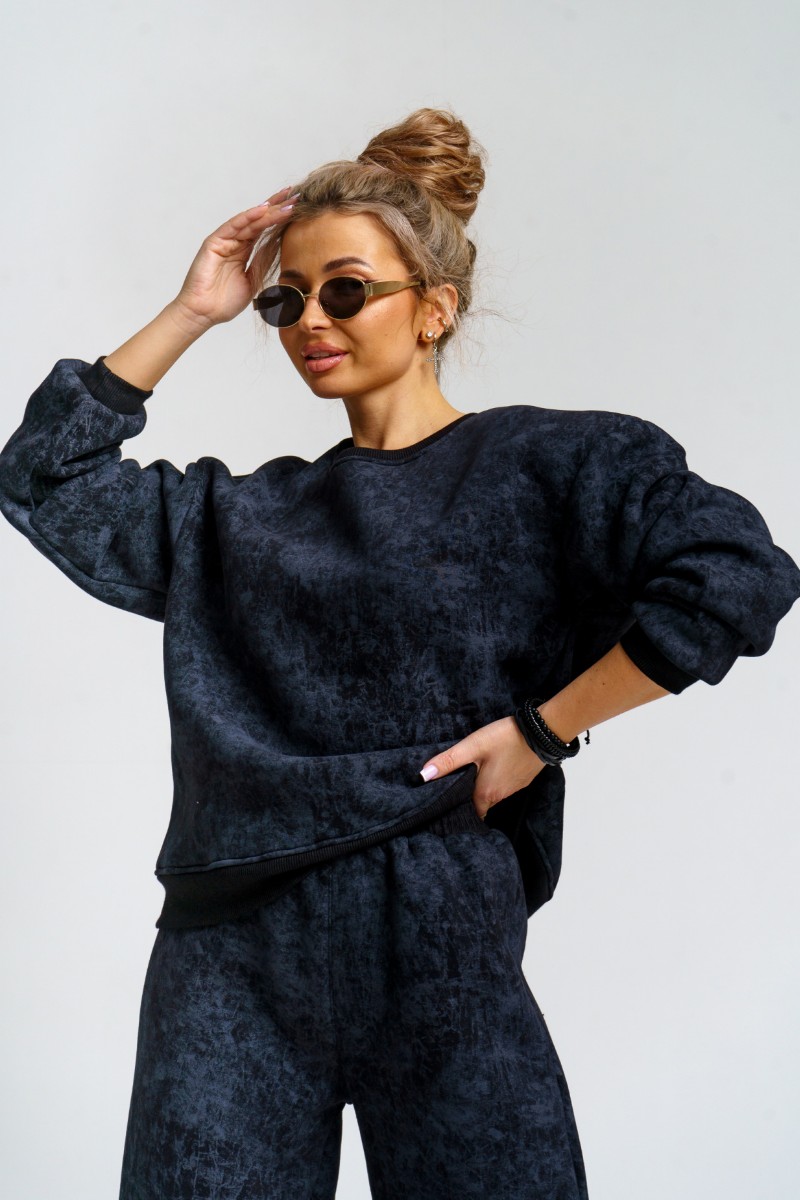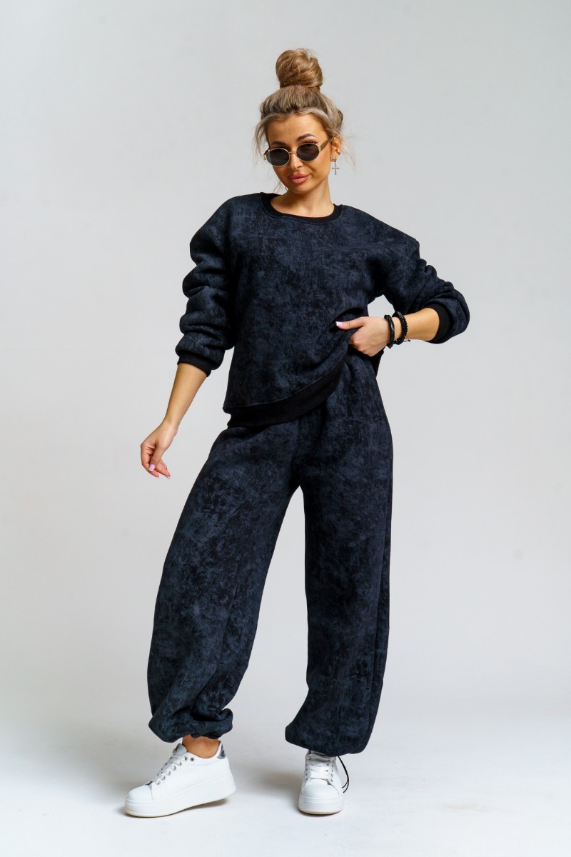 Костюм двойка женский 983 футер 3-х нитка с начёсом пенье (р-ры: 44-54) черный винтаж