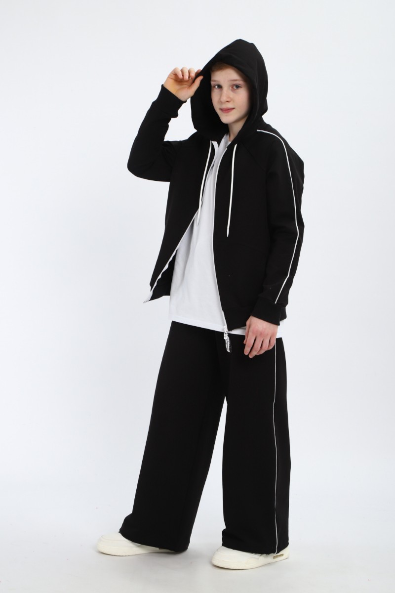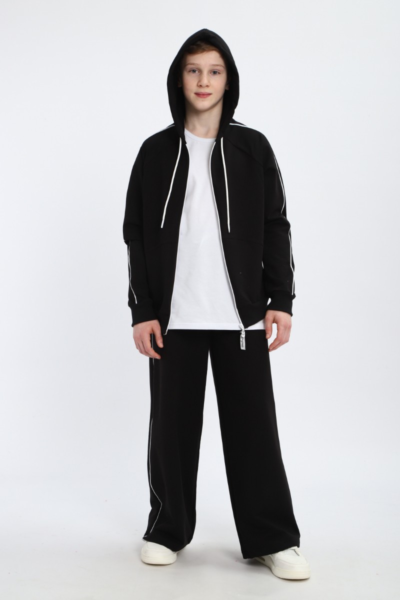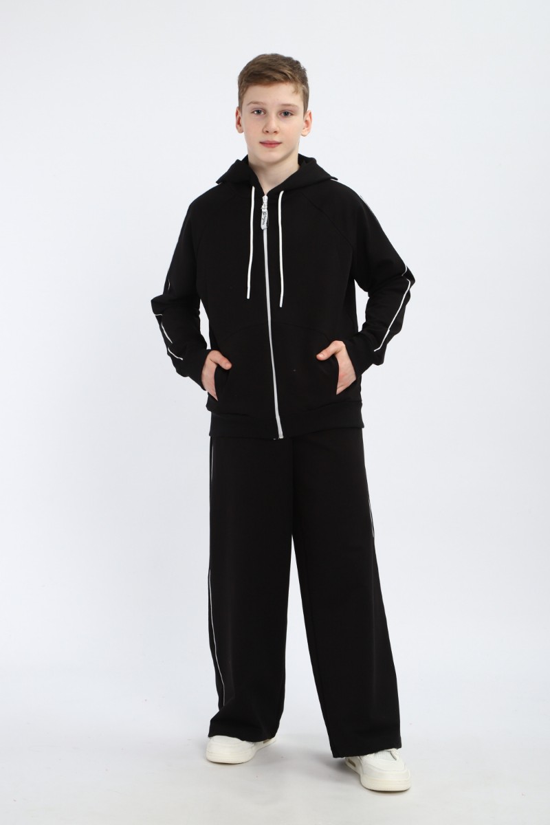 Представляем Вашему вниманию спортивный костюм для мальчика и девочки, который станет идеальным выбором для активного ребенка! Модный крой костюма для мальчика и стильный дизайн подчеркнут индивидуальность спортсмена. Натуральный материал костюма детского для мальчика обеспечивает максимальный комфорт и свободу движений во время занятий спортом, прогулок и путешествий. Удобство и практичность костюма весеннего для мальчика оценят родители: куртка оснащена молнией-зипкой и вместительными карманами-кенгуру, брюки имеют эластичный пояс с регулировочным шнурком и удобные боковые карманы. Низ штанов стягивается резинкой, что позволяет брюки палаццо превращать в брюки багги. Так же эта функция костюма летнего для мальчика удобна при активных движениях. Костюм для подростка мальчика и девочки прекрасно выполняет функции спортивной формы в школу. Зип худи удобно снять, если ребенку стало жарко. Спортивный костюм подростковый для мальчика и для девочки позволяет чувствовать удобство и комфорт. Поэтому спортивная форма для мальчика прекрасно справляется с функциями одежды для отдыха в поездке морю, в детский лагерь, в гости к любимой бабушке. Костюм оверсайз для мальчика и девочки может стать главной деталью при создании образа в стиле спорт шик. Спортивный костюм для мальчика подарит возможность подростку быть в тренде за счет оверсайз кроя. Монохромный спортивный костюм для детей подойдет для нанесения спортивной символики секций и команд, в которых занимается ваш ребенок. Спортивный костюм мужской для мальчика пригодится круглогодично. Спортивный костюм для девочки немаркий, легко стирается и сушится. Костюм детский для девочки это необходимая спортивка, подходящая как комплект для танцев, гимнастики, выступлений. Спортивный костюм на молнии для подростка подходит как для ежедневного ношения, так и для участия в соревнованиях, походов в спортивные секции и семейных выездов на природу.