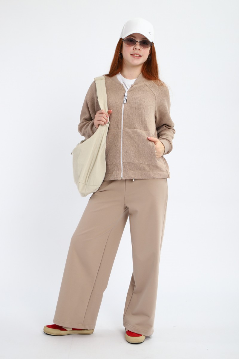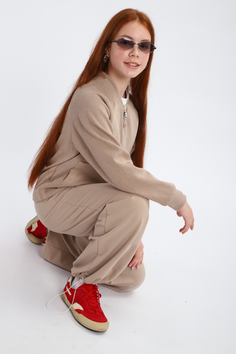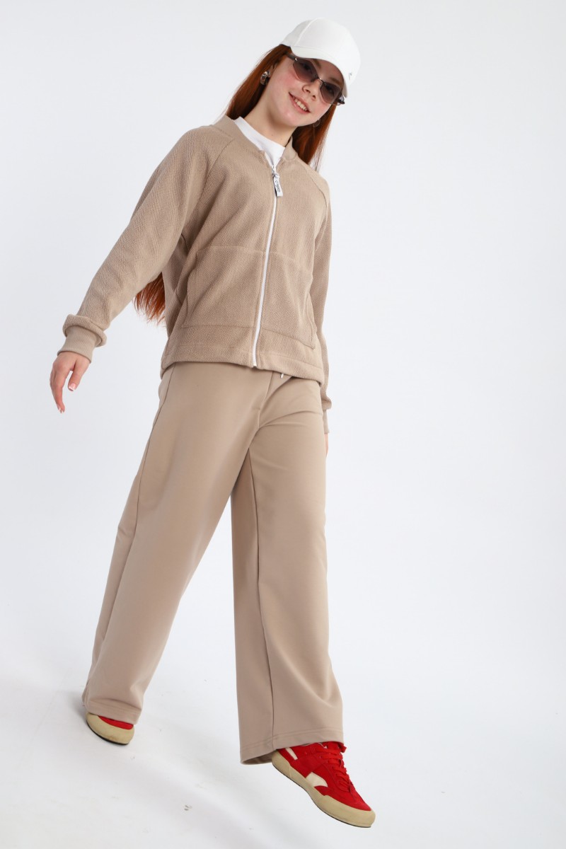 Представляем Вашему вниманию стильный брючный костюм для девочек подростков — идеальный выбор на весенний и летний сезон. Костюм для девочки - двойка включает свободные штаны-палаццо и удобную кофту бомбер на молнии, что делает комплект универсальным для детской одежды. Натуральный хлопковый материал обеспечивает дышащий эффект, благодаря чему подростковый костюм комфортен даже в жаркую погоду. Модная и минималистическая расцветка сочетается с другими вещами детского гардероба, а оверсайз крой подойдет как на стройняшек, так и на плотных девочек. Универсальная модель спортивного костюма для девочки пригодится для школы, поездок в детский лагерь, отдыха у моря, а также как спортивная форма на физкультуру или для танцев. Брюки летнего костюма для девочки фиксируются на поясе широкой резинкой и регулируются шнурком, а внизу штанов резиночка, позволяющая стягивать их по желанию. Это делает летний костюм для девочки максимально удобным и практичным для активных подростков. Детский брючный комплект идеально подходит для нанесения принта спортивной или танцевальной команды. Летняя расцветка костюма для девочки подростка добавляет свежести образу. Натуральный хлопковый материал дарит комфорт. Костюм весенний для девочки подростка на молнии быстро надевается и снимается, что особенно удобно для школьных занятий или прогулок. Свободный крой спортивного костюма для девочки подростка позволяет чувствовать себя раскованно, Этот подростковый костюм легко адаптируется под различные образы, отлично смотрится как с кроссовками, так и с другой обувью. Костюм детский подходит для активных прогулок, тренировок, занятий танцами и спортивных мероприятий. Благодаря натуральному составу комплекта для девочки, кожа дышит, что особенно важно для подростков и детей. Модная двойка пригодится у моря, в поездке, в детском лагере и на физкультуре. Костюм летний для девочки подростка может стать полезным подарком! Минималистический стиль делает демисезонный костюм для девочки универсальным для любого сезона.