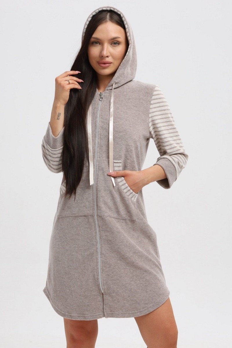 Халат женский 321 кулирка (р-ры: 44-54) коричневый-бежевый