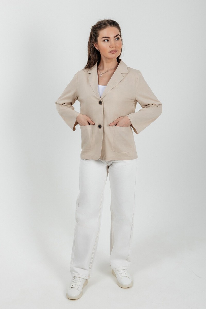 Пиджак женский №059362 лён смесовый (р-ры: 40-50) бежевый
