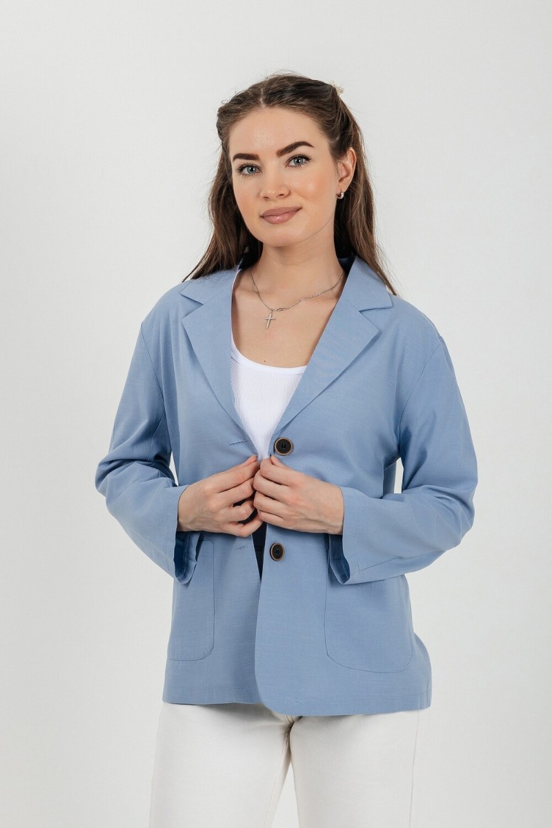 Пиджак женский №059362 лён смесовый (р-ры: 40-50) голубой