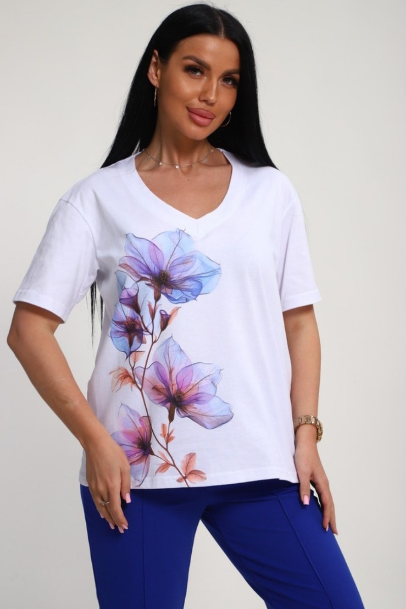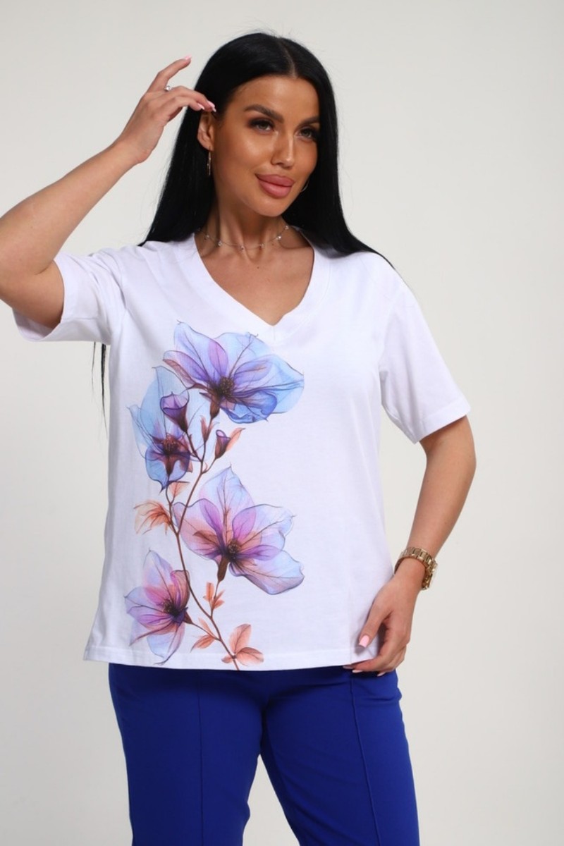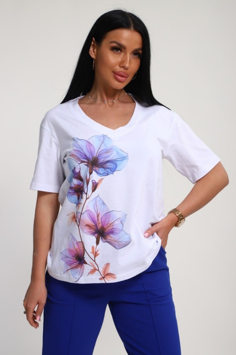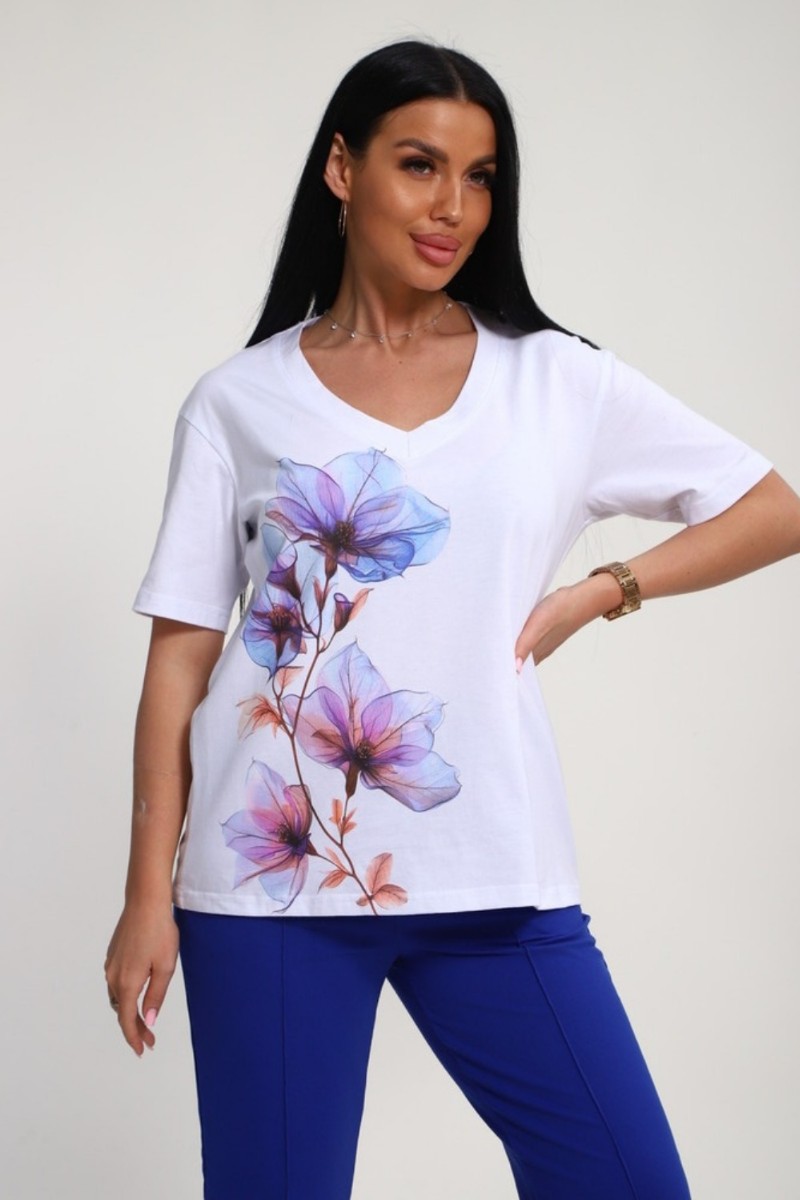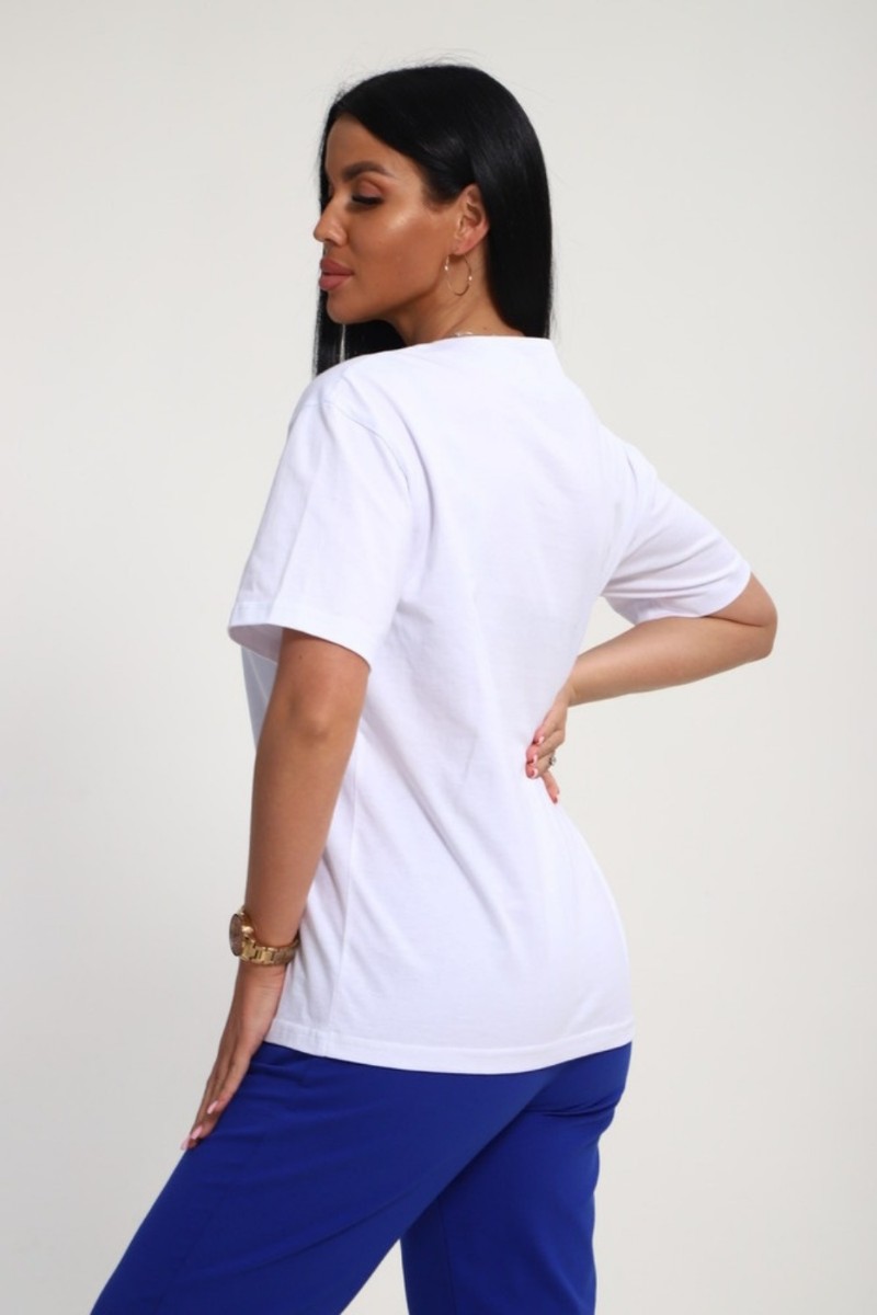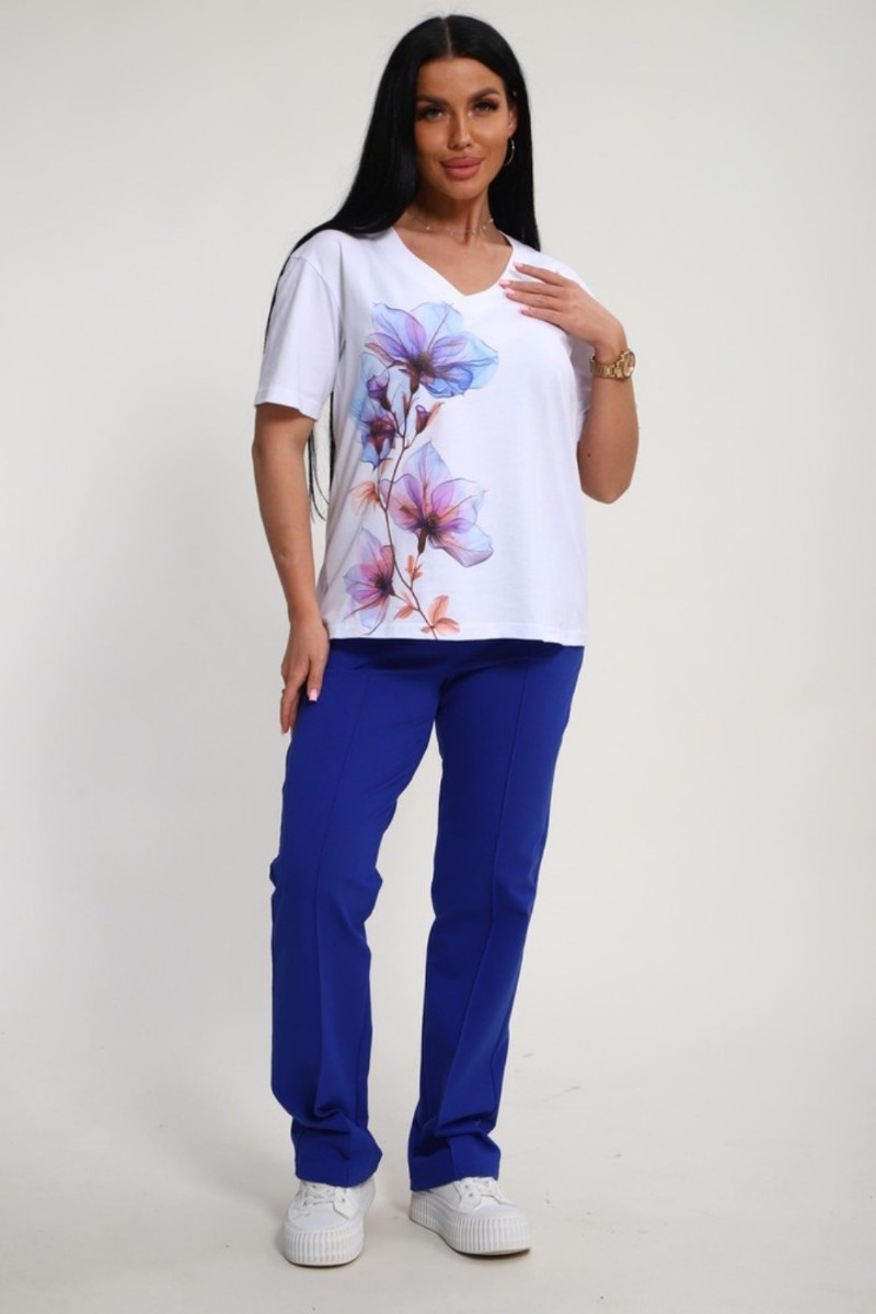 Представляем Вашему вниманию костюм женский – стильный и идеальный предмет гардероба, идеально подходящий для дома и отдыха на любой период: весенний, осенний, летний и зимний. Комплект состоит из футболки с красочным принтом и брюки со стрелками, в контрастном цвете. В составе ткани 100% хлопок. Хлопковый материал очень комфортный и лёгкий в носке.