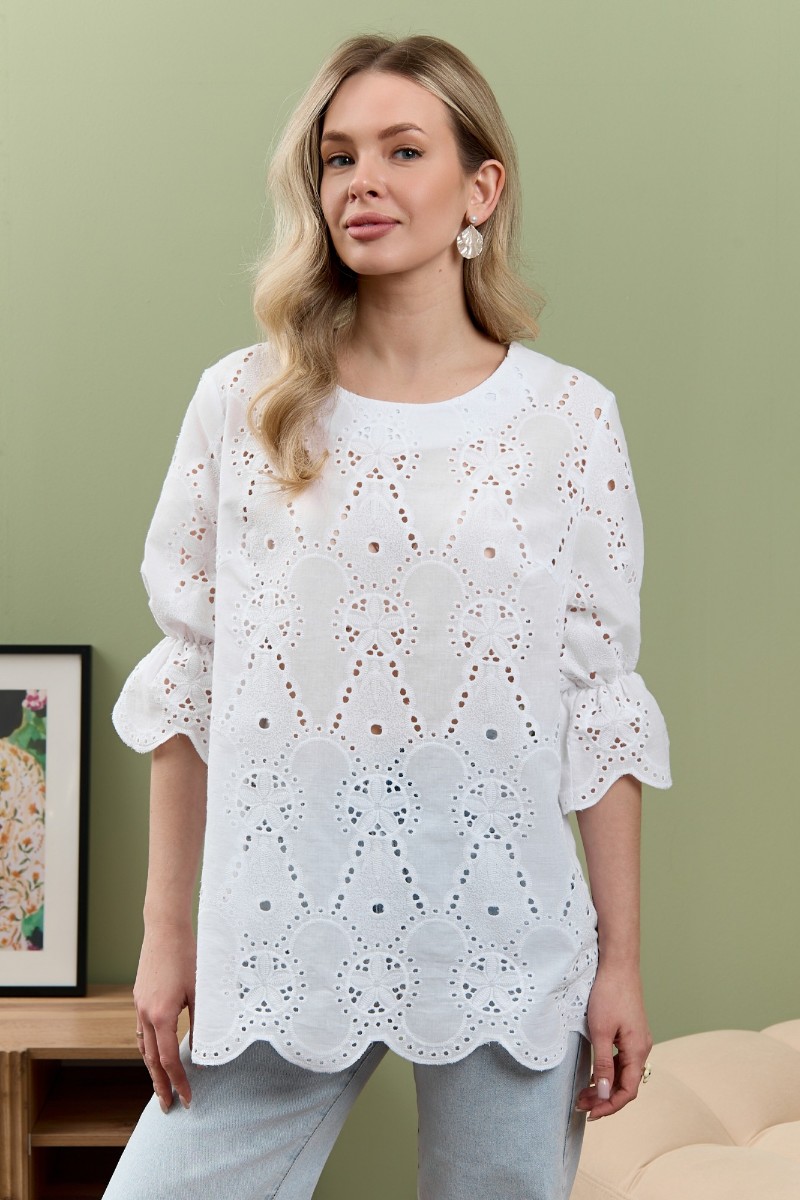 Блузка женская "Милица-1" плательная ткань (р-ры: 46-56) белый-4
