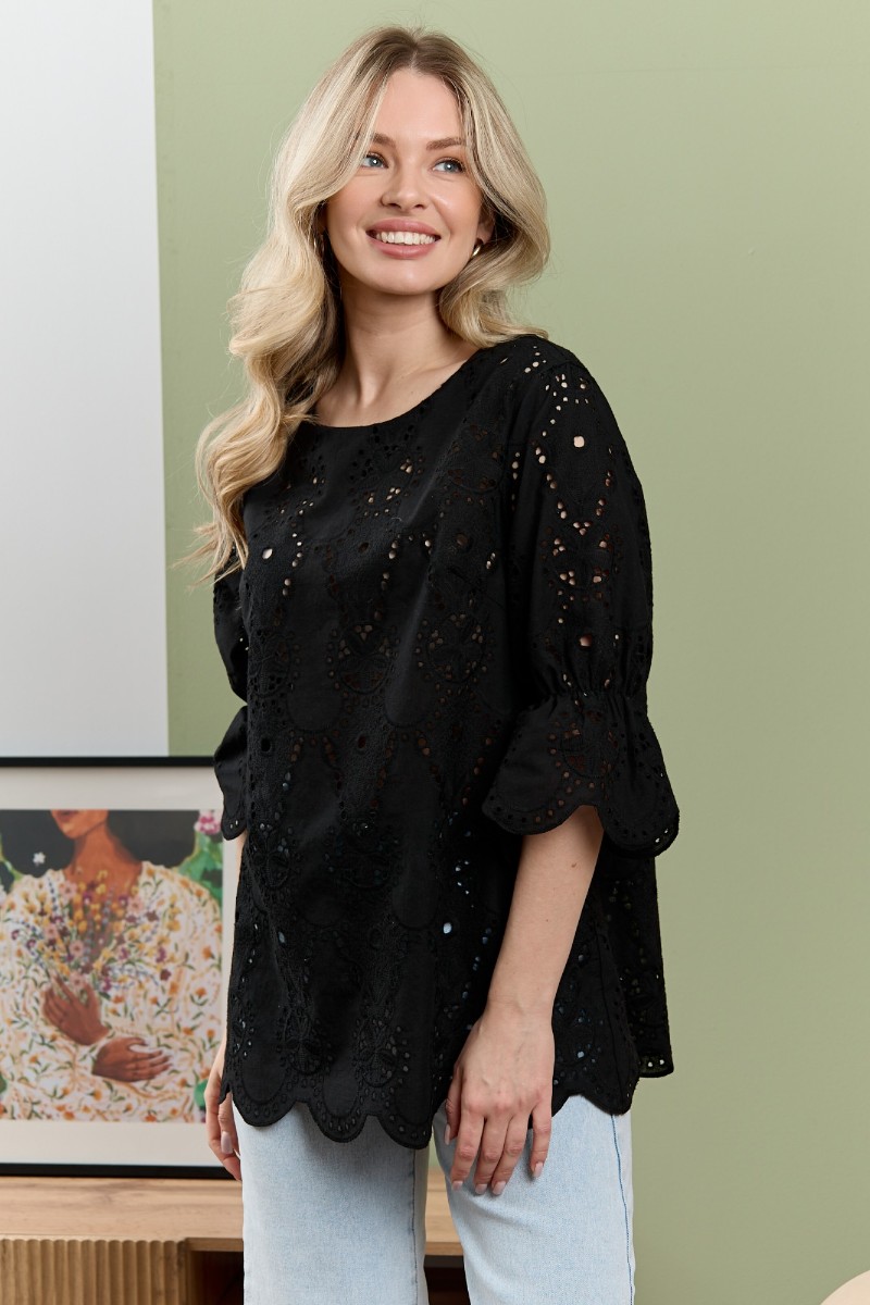 Блузка женская "Милица-1" плательная ткань (р-ры: 46-56) черный-4