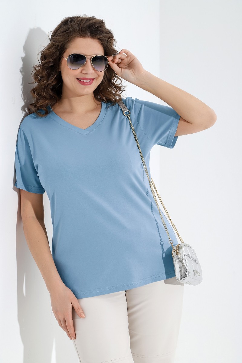Футболка женская "Базис-5" кулирка с лайкрой (р-ры: 48-58) голубой