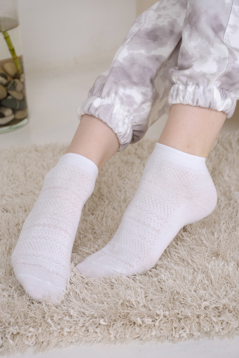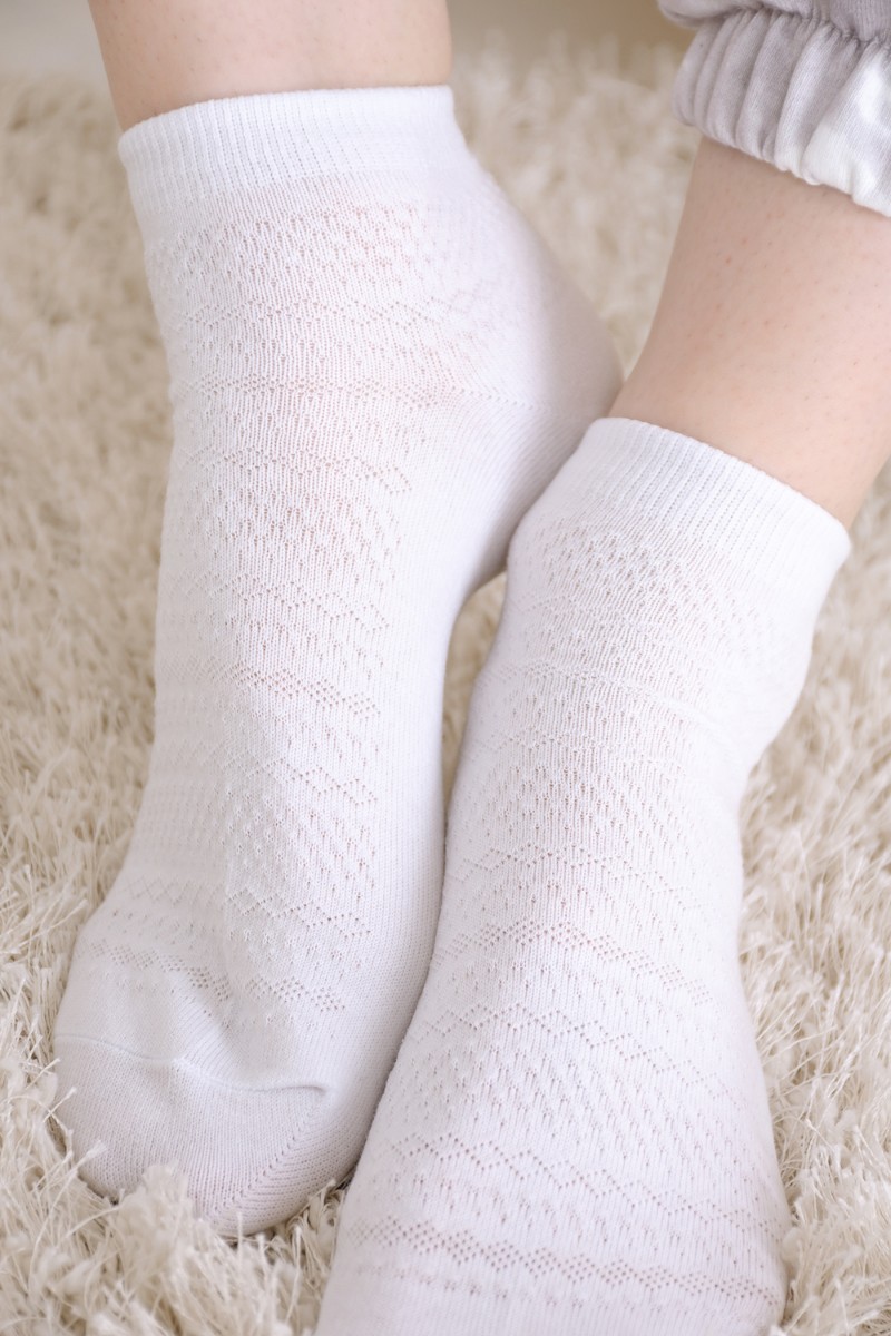 Представляем Вашему вниманию ажурные женские носочки в спокойных оттенках. На резинке, по верху ажурный рисунок, по стопе - гладкие. В упаковке 2 пары одного цвета.