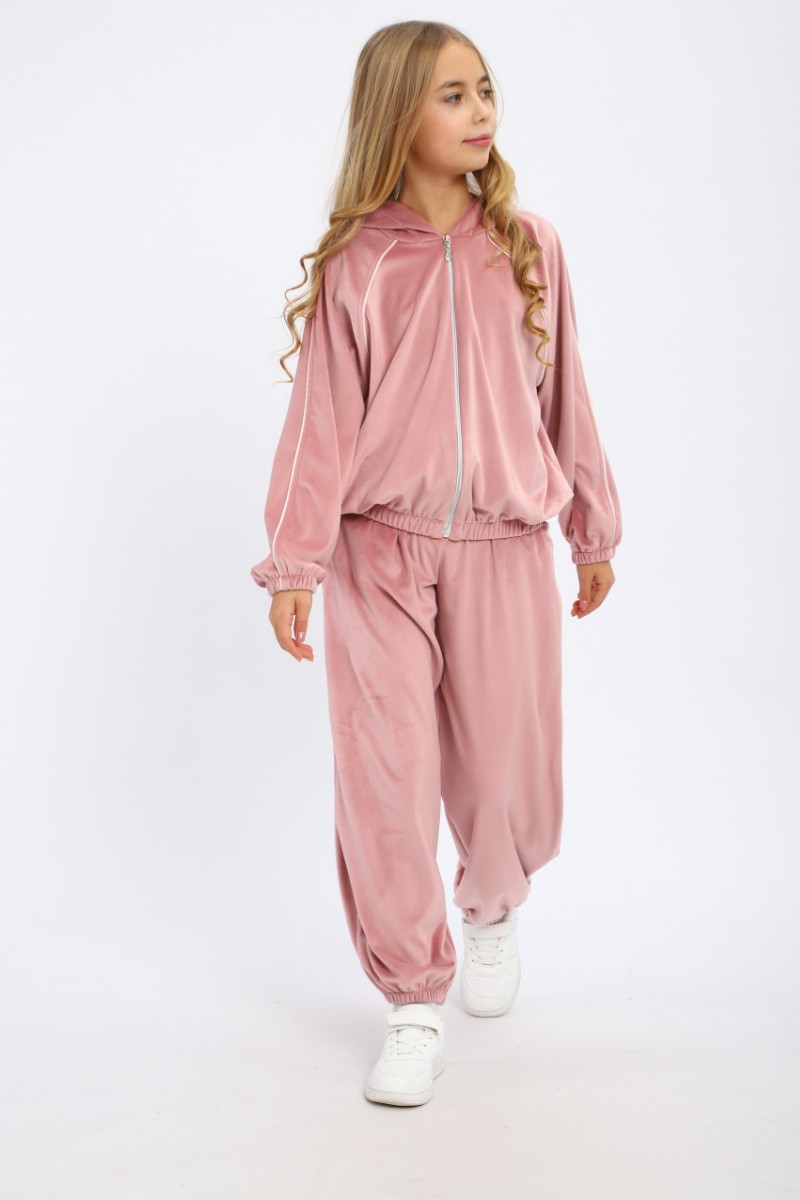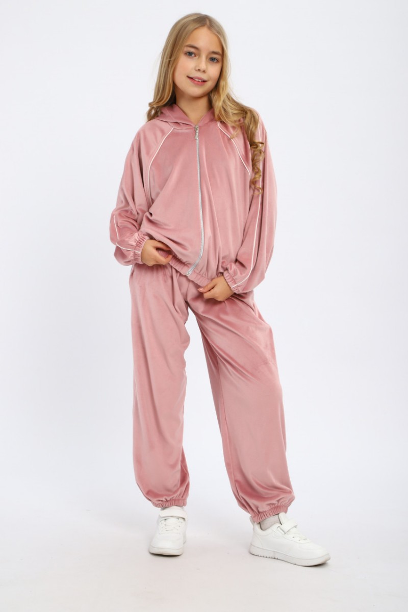 Костюм двойка детский МЛШ "Lux" велюр (р-ры: 122-152) пудра