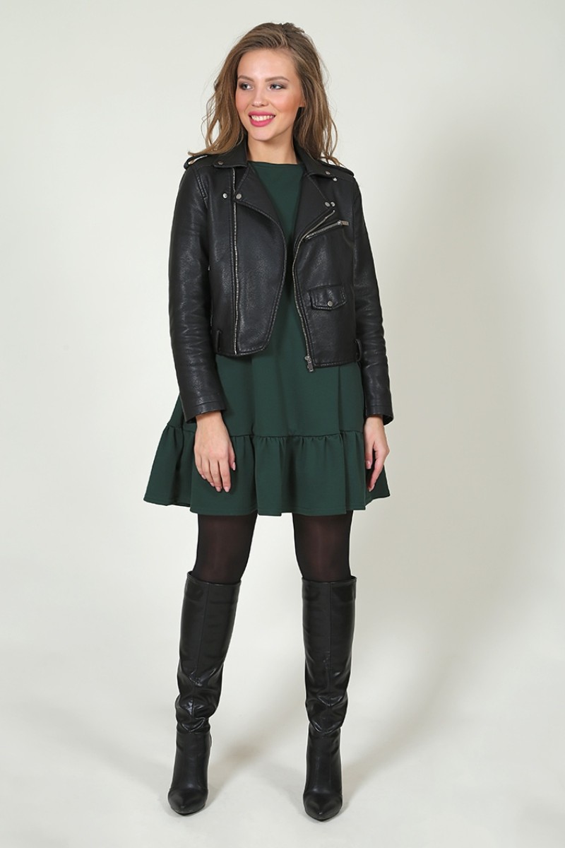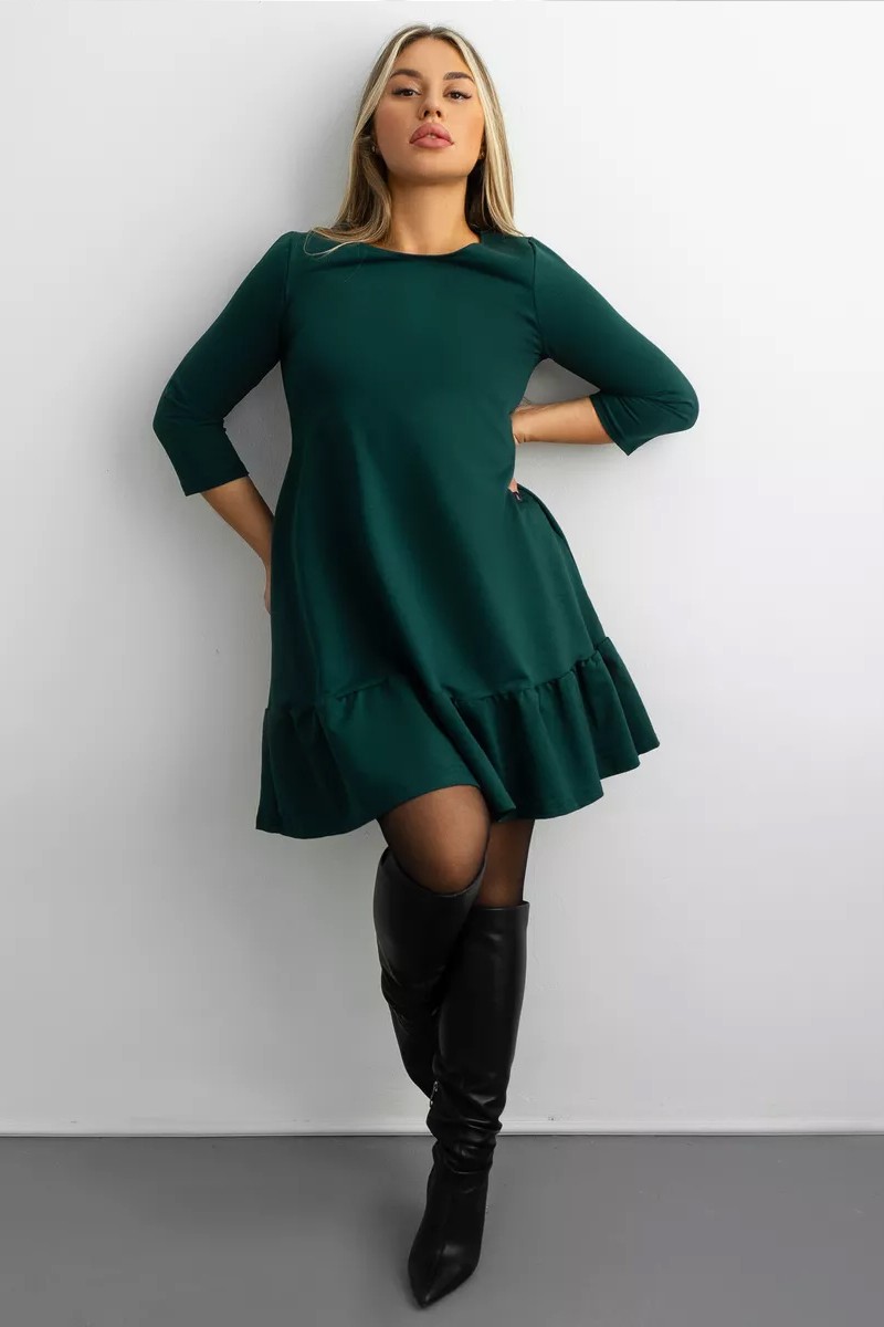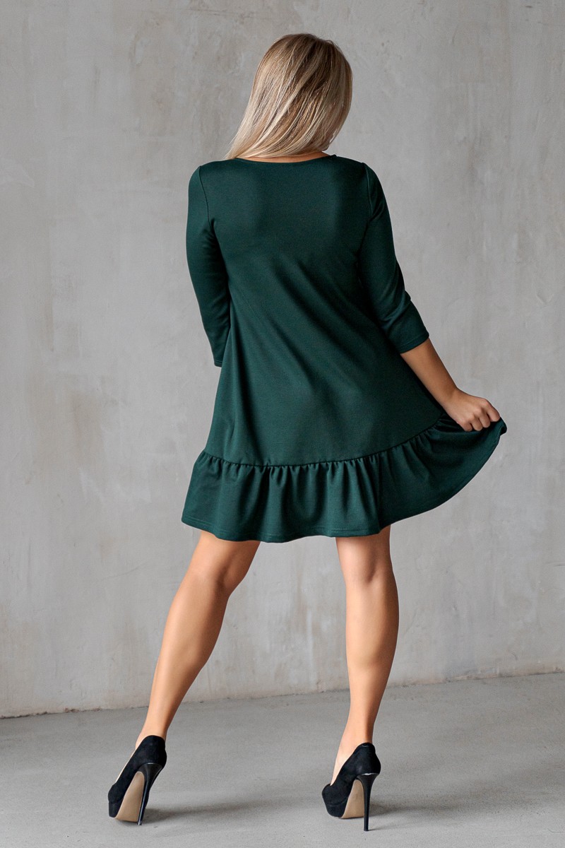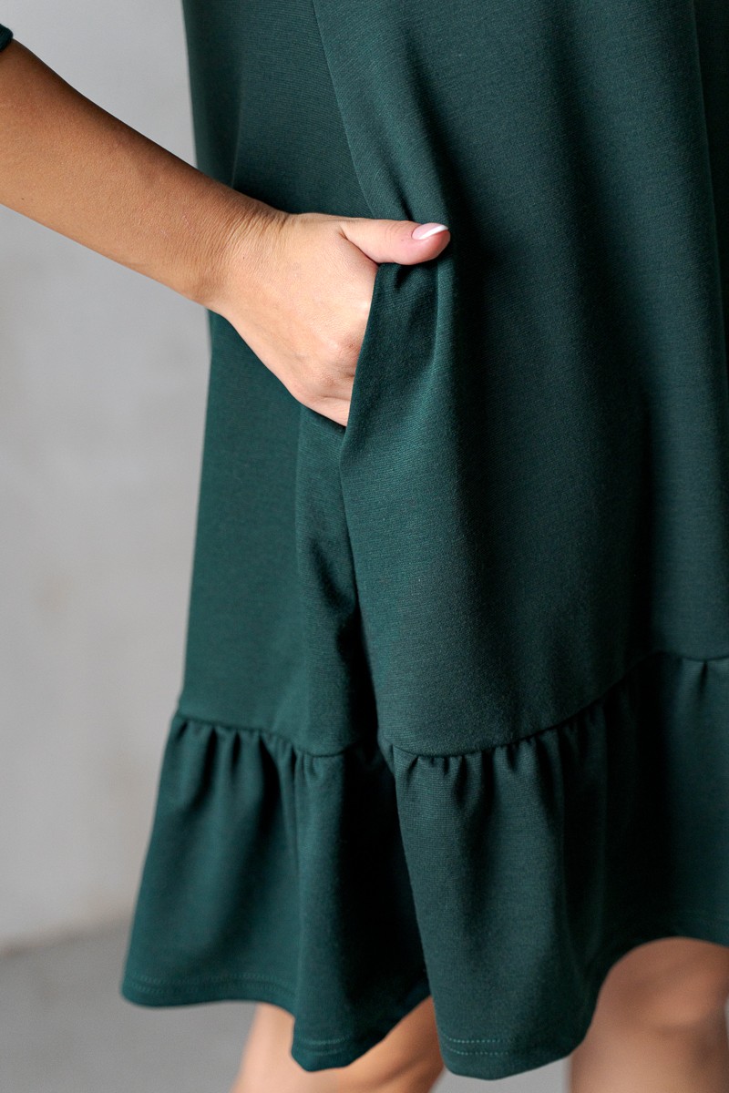 Представляем Вашему вниманию платье свободного силуэта – это тренд предстоящего сезона. Длина рукава 3/4 добавит девушке строгости, а поэтому вещицу можно использовать как рабочий дресс-код. Но воланы по подолу наряда внесут немного мягкости в однообразные будни. Платье хорошо смотрится с темными сапогами, куртками и небольшими сумочками.