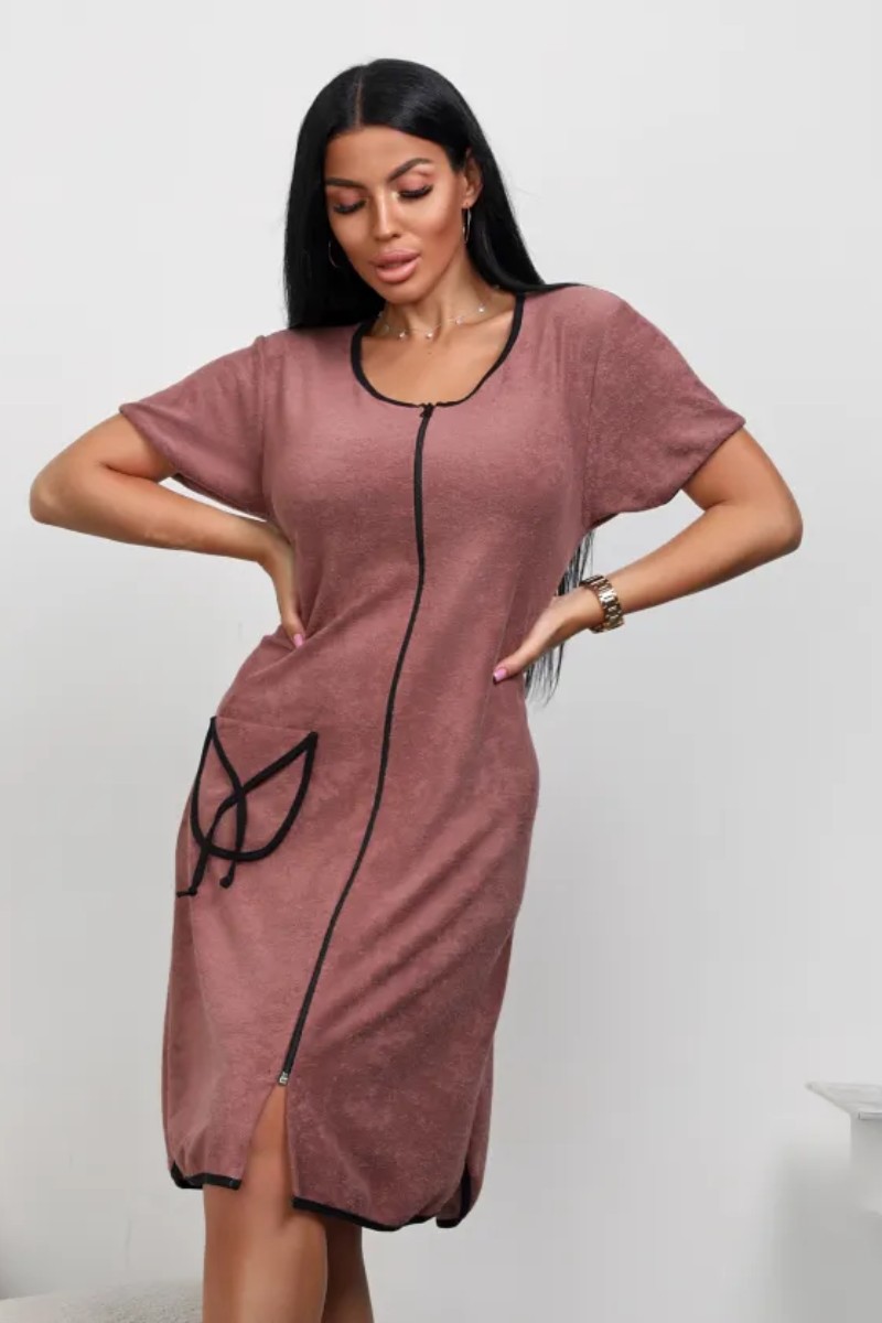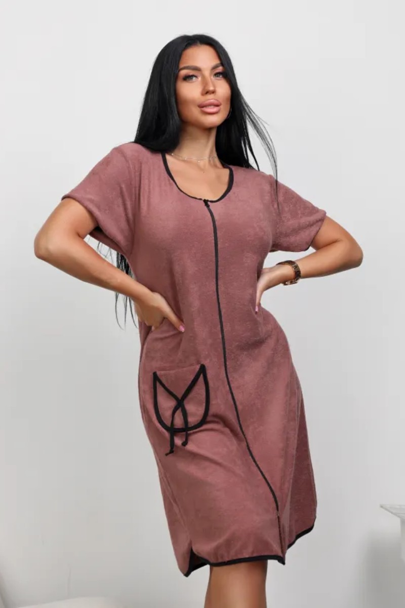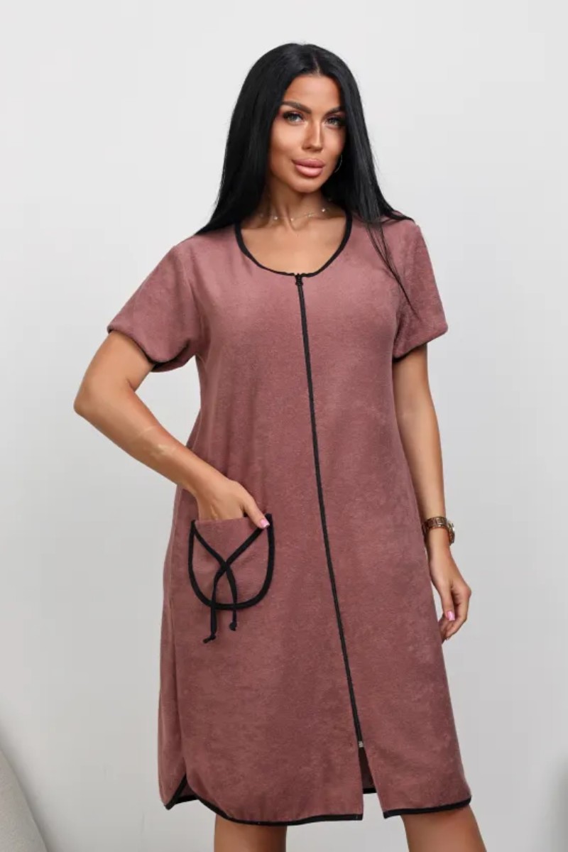 Представляем Вашему вниманию женский махровый халат, сшитый из мягкой, но в тоже время износостойкой ткани. Состав материала в процентном соотношении: хлопок 80%, полиэстер 20%. Полуприлегающий силуэт обеспечивают идеальную посадку по фигуре даже больших размеров! Вырез горловины U-образный - придает изысканность. Короткие рукава обеспечивают свободу движений, что делает его незаменимым в любой ситуации. Домашний халат представлен с накладными карманами, добавляющими практичности. Халат женский сочетает в себе модные тенденции с повседневной практичностью. Универсальный и всегда актуальный однотонный цвет. Длина чуть выше колена идеально подходит для дома. Также изделие учитывает разные типы фигур, включая большие размеры, что позволяет каждой женщине чувствовать себя уверенно. Халат женский домашний на молнии – это лучший выбор для тех, кто ценит сочетание стиля и удобства в повседневной одежде. Махровый материал обеспечивает дышащие свойства, сохраняя комфорт весь день.