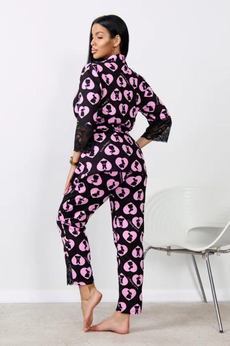 Представляем Вашему вниманию женскую пижаму со штанами и верхом кимоно - идеальный комплект двойка для комфортного отдыха дома. Этот набор домашней одежды выполнен из 100% хлопка, что позволит Вам чувствовать себя свободно и комфортно в любое время года. Благодаря большому размерному ряду, каждая женщина найдет идеально подходящий вариант для высоких и невысоких. Женская пижама выполнена с элегантным и красивым кружевом. Пижама с брюками обеспечит Вам максимальный комфорт благодаря удобной резинке, которая не будет сдавливать. Этот набор также подойдет для кормящих мам, благодаря удобному верху-кимоно и легкому доступу к груди. Элегантный костюм выполнен из дышащей ткани, стильная пижама больших размеров идеальный выбор для вашего гардероба. Этот универсальный комплект сочетает в себе уют, практичность и изысканность деталей. Нежная отделка кружевом добавляет образу женственности и романтичности, превращая повседневный отдых в особый ритуал. Свободный крой кимоно и мягкие штаны на резинке не стесняют движений и способствуют полноценному расслаблению. Пижама станет прекрасным подарком для себя или близких, даря ощущение заботы и нежного комфорта каждый день.
