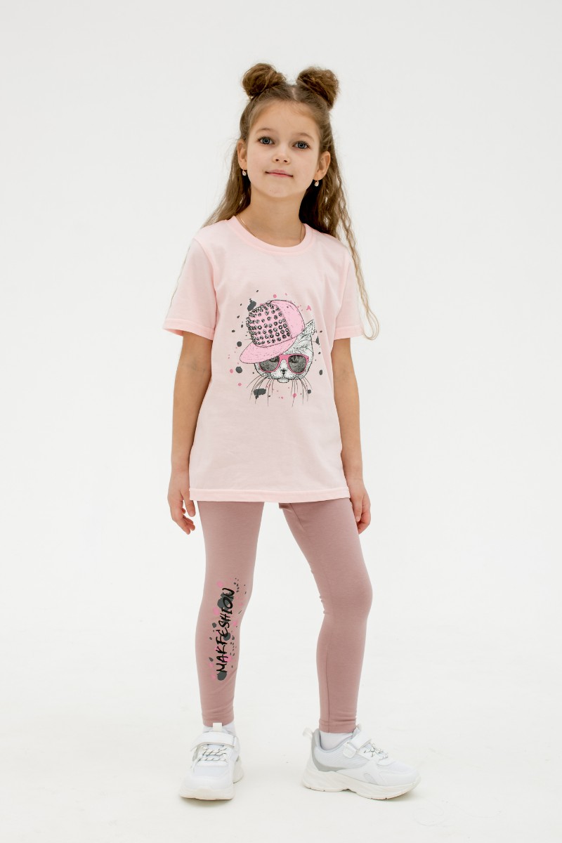 Представляем Вашему вниманию футболку для девочки "Дерис", выполненную из хлопкового полотна, оформленную принтом-шелкографией на ткани. Округлый эластичный ворот, короткий рукав и прямой покрой футболки абсолютно не сковывают движений, даря Вашему ребенку свободу действий. Отличный вариант на каждый день.