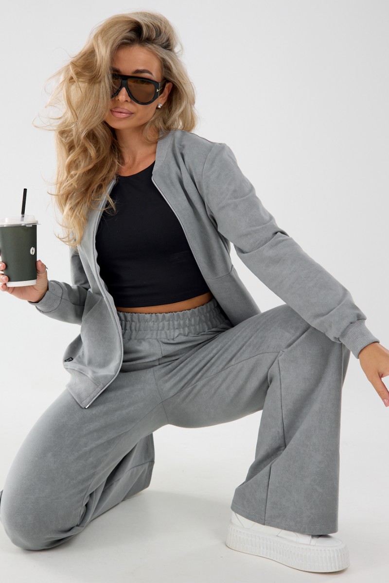 Представляем Вашему вниманию брючный костюм, выполненный из футера варёнки ― плотного и мягкого материала. В наборе толстовка с длинным рукавом и брюки. Толстовка имеет удобную застежку на молнию и два удобных кармана. Широкие брюки, не стесняют движений, переливающийся материал с имитацией варёнки – главный составляющий стильного костюма на этот сезон. Толстовка и штаны помогут создать разнообразные трендовые образы в спортивном и уличном стиле. Мягкие манжеты не позволяют рукавам задираться, а эластичная резинка в поясе нежно прилегает к телу. Такой костюм идеален для работы в офисе, учебы, свиданий и путешествий. Плотная ткань хорошо сохраняет тепло. Благодаря полиэстеру и лайкре в составе она отлично держит форму и не боится частых стирок. Бархатистая текстура ткани позаботится о тебе в течение дня.