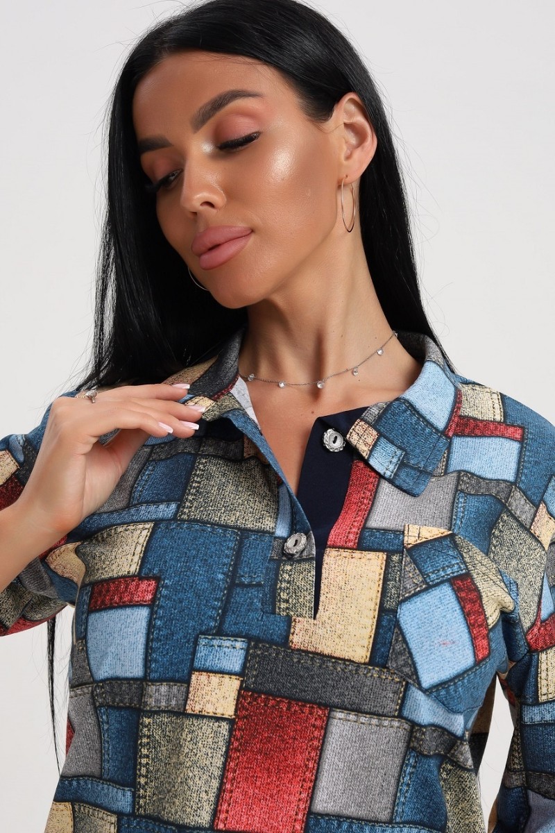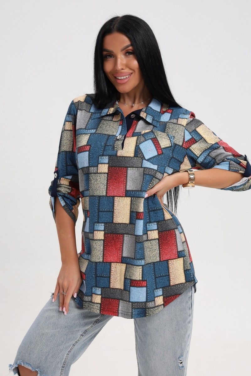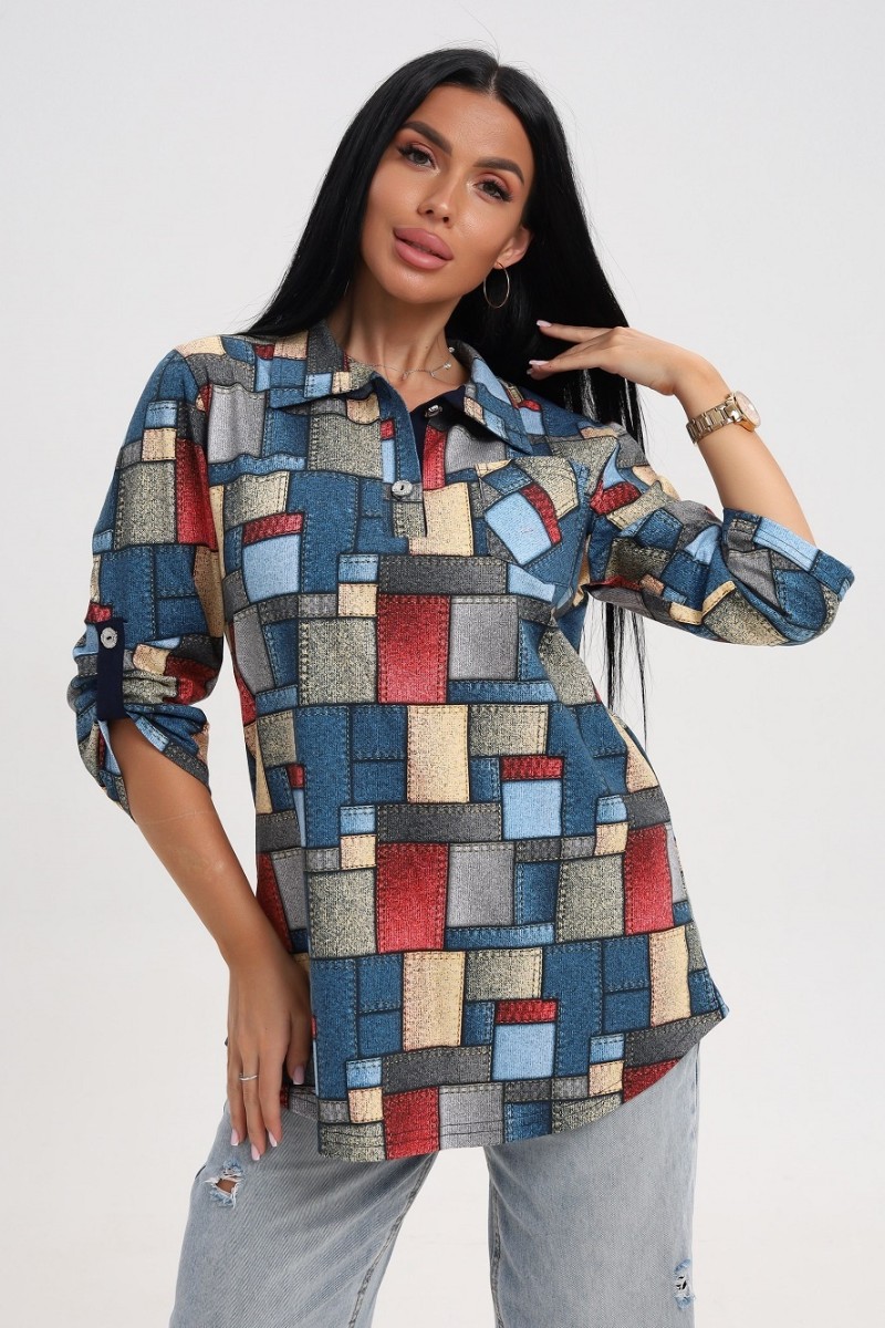 Представляем Вашему вниманию женскую тунику с воротом приталенного силуэта на пуговицах. Ткань кулирка набивная, рисунок полоска. На планке, ворот отложной. Рукав длинный с патой, которой можно сделать сборку. Короткий рукав не сковывает движения создавая образ женственным. Одна планка и пата на рукаве из отделочной ткани. На левой стороне карман. Низ закругленный, длинна ниже бедер, подходит для повседневной носки, для офиса. Удобный, яркий и практичный вариант одежды для работы, дачи, прогулок.