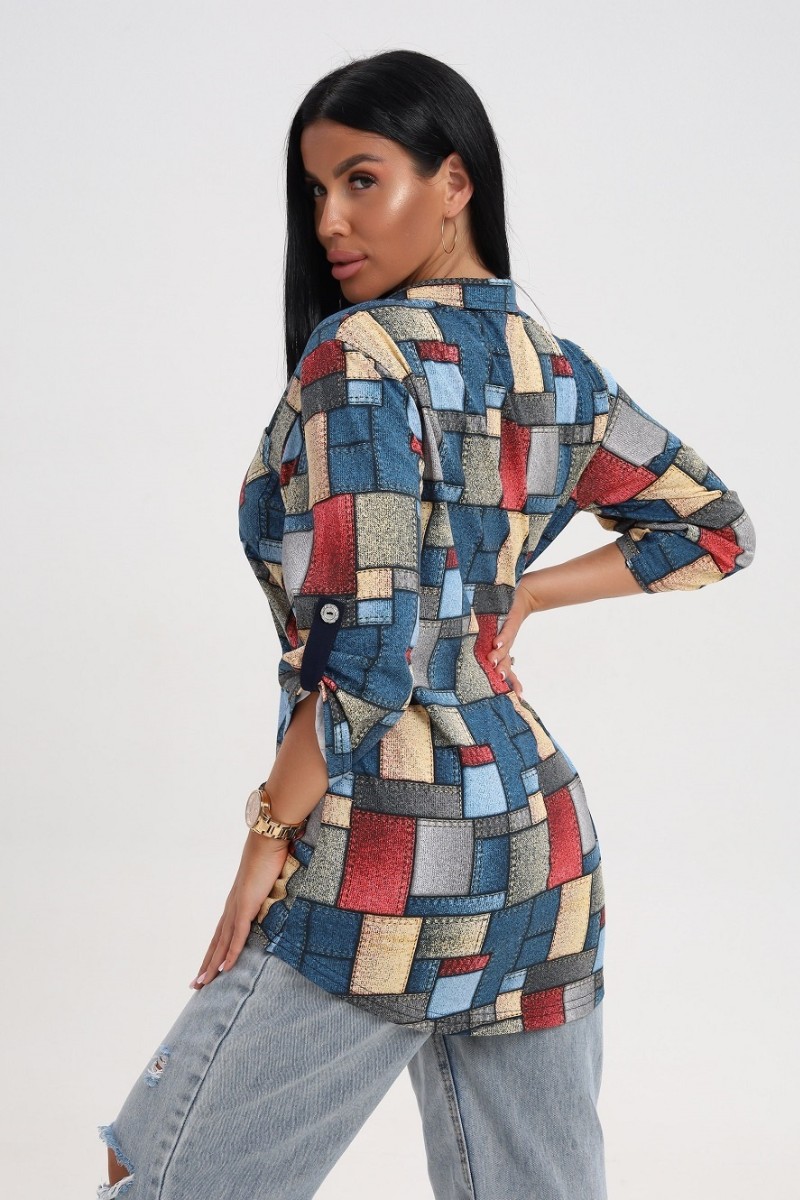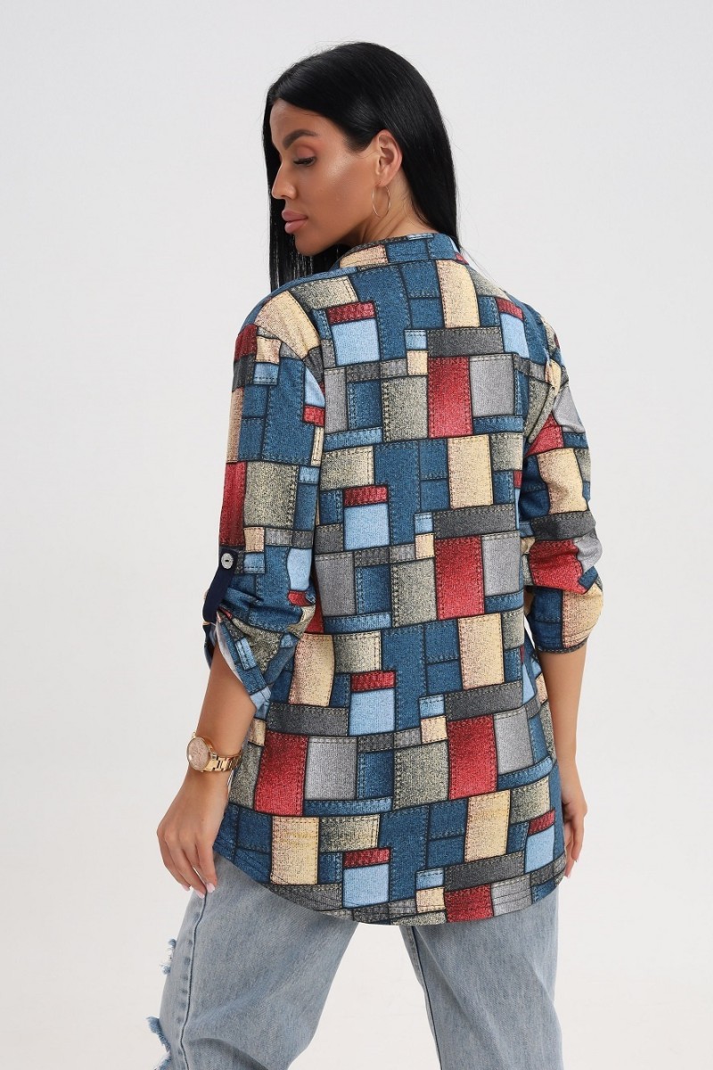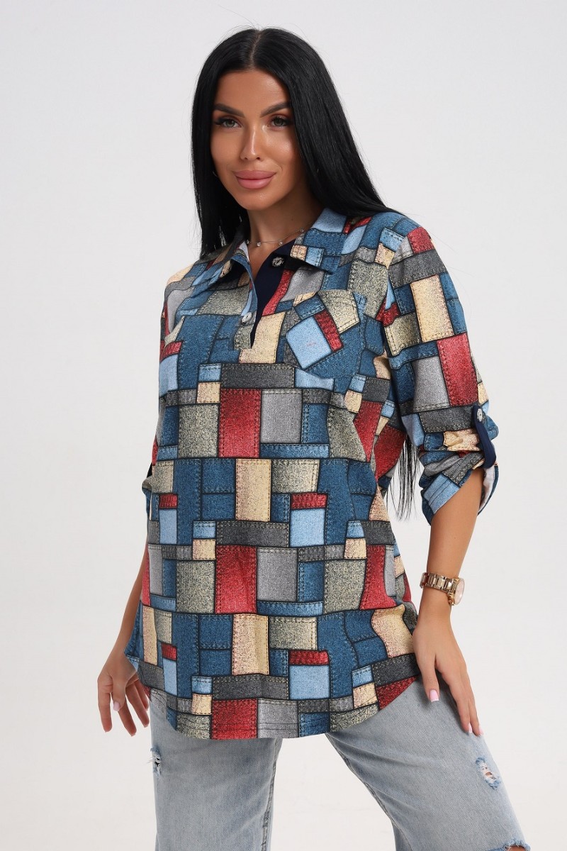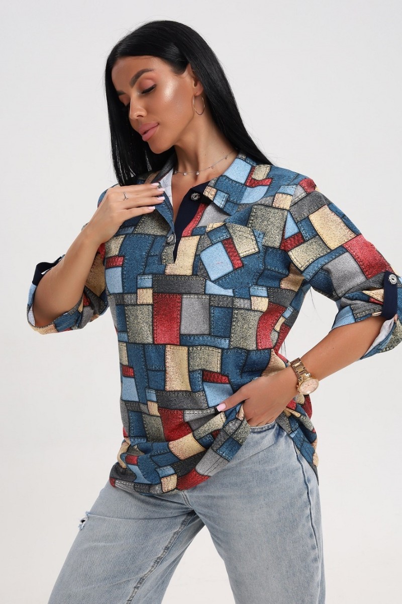 Представляем Вашему вниманию женскую тунику с воротом приталенного силуэта на пуговицах. Ткань кулирка набивная, рисунок полоска. На планке, ворот отложной. Рукав длинный с патой, которой можно сделать сборку. Короткий рукав не сковывает движения создавая образ женственным. Одна планка и пата на рукаве из отделочной ткани. На левой стороне карман. Низ закругленный, длинна ниже бедер, подходит для повседневной носки, для офиса. Удобный, яркий и практичный вариант одежды для работы, дачи, прогулок.
