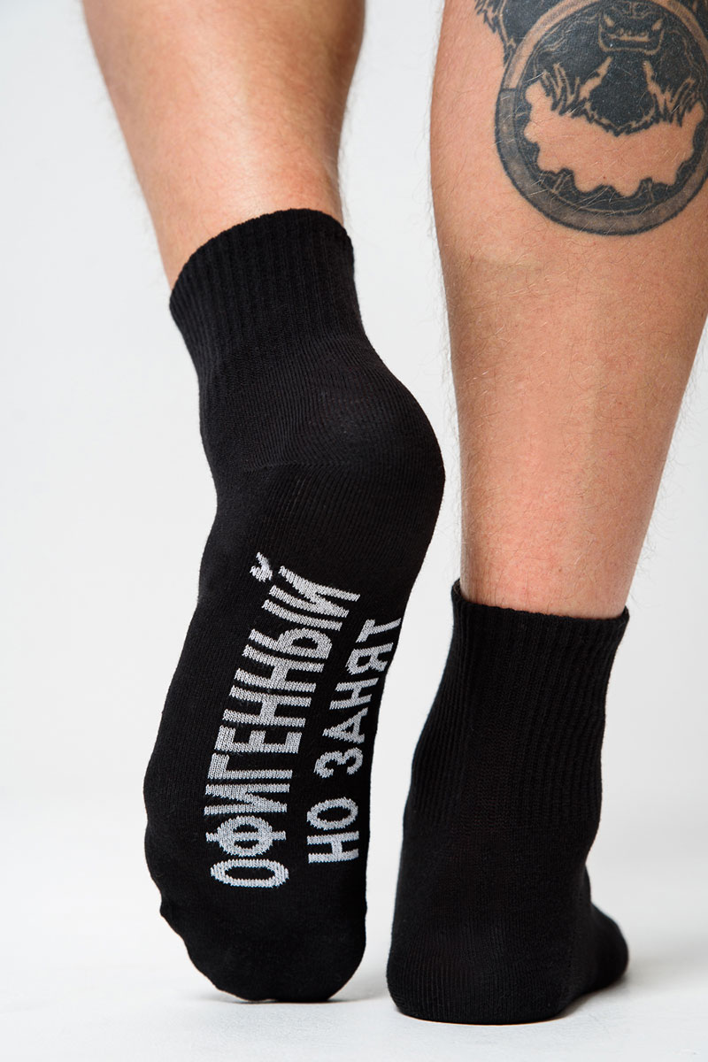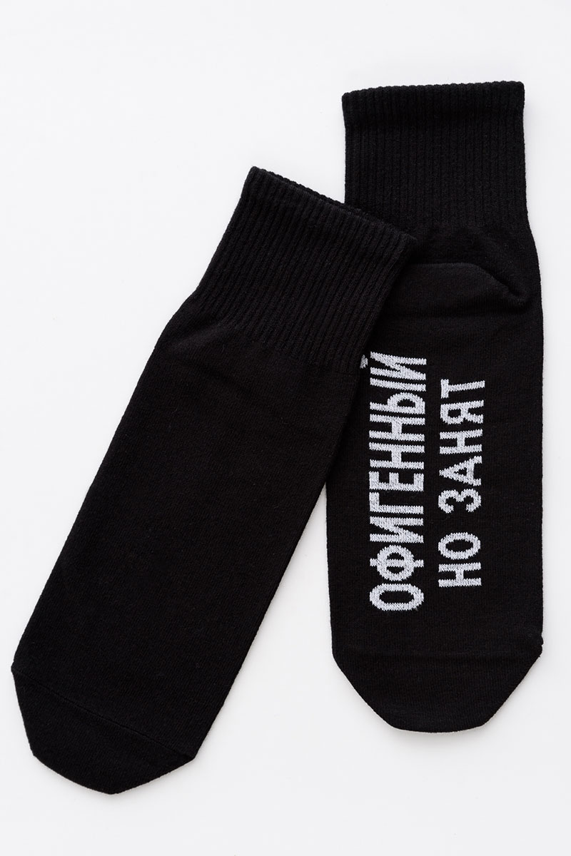 Представляем Вашему вниманию мужские носки. Широкая резинка по всей верхней части носка. Надпись на стопе.