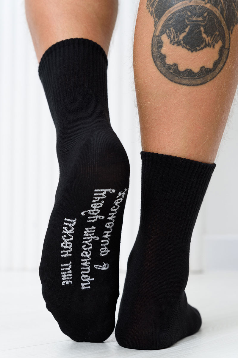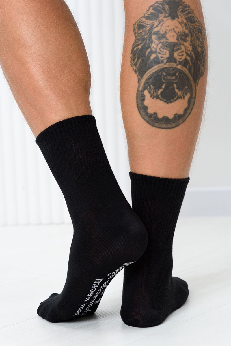 Представляем Вашему вниманию мужские носки. Широкая резинка по всей верхней части носка. Надпись на стопе.