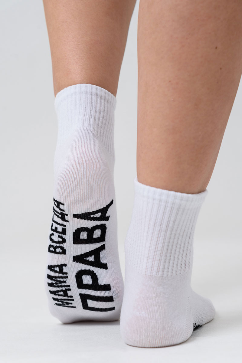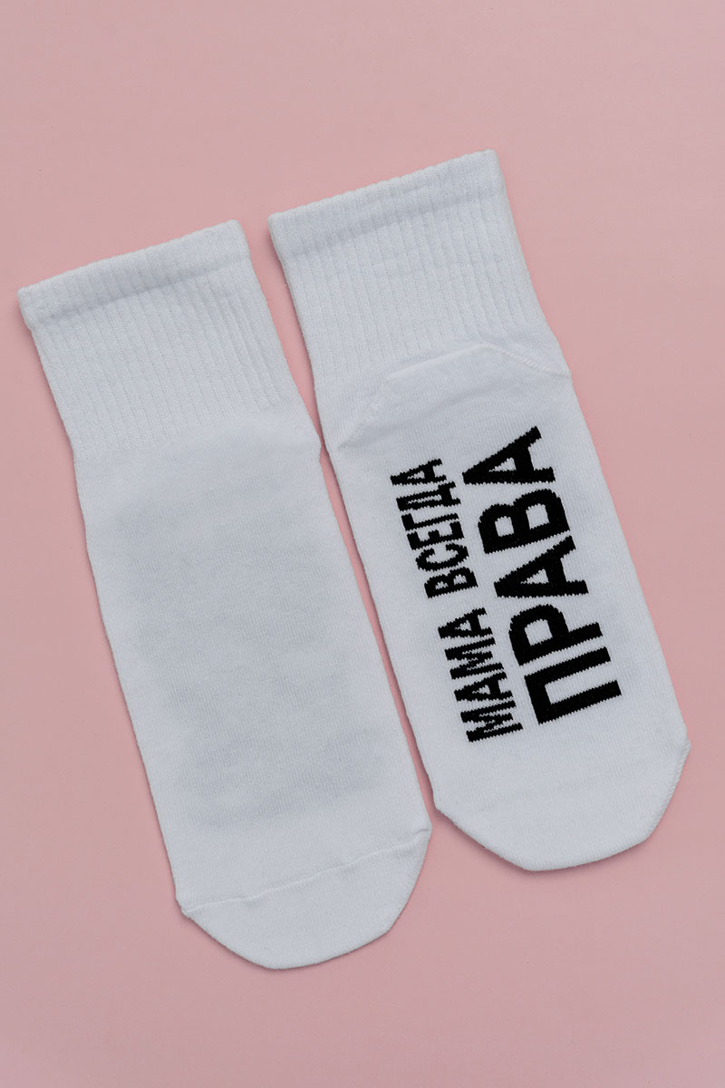 Представляем Вашему вниманию женские носки, в комплекте 2 пары. Широкая резинка по всей верхней части носка. На стопе надпись "Мама всегда права". Отличный подарок!