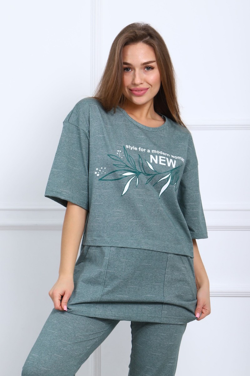 Пижама женская №627 кулирка (р-ры: 48-60) зеленый