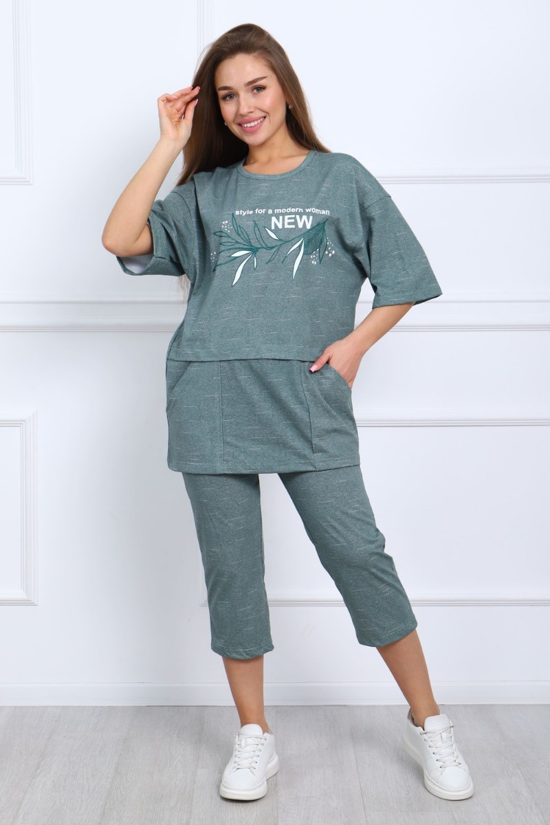 Представляем Вашему вниманию женскую трикотажную пижаму, сшитую из высококачественной кулирки — красивая, современная и стильная комбинация бриджей (Bridges) и T-shirt, которая идеально подойдёт для девушек, женщин, подростков и зрелых дам. Это уютное, комфортное и удобное повседневная двойка из мягкого трикотажа, что обеспечивает свободную посадку и подчёркивает эстетику. Лёгкая ткань приятна к телу, подходит для весенних и летних дней.