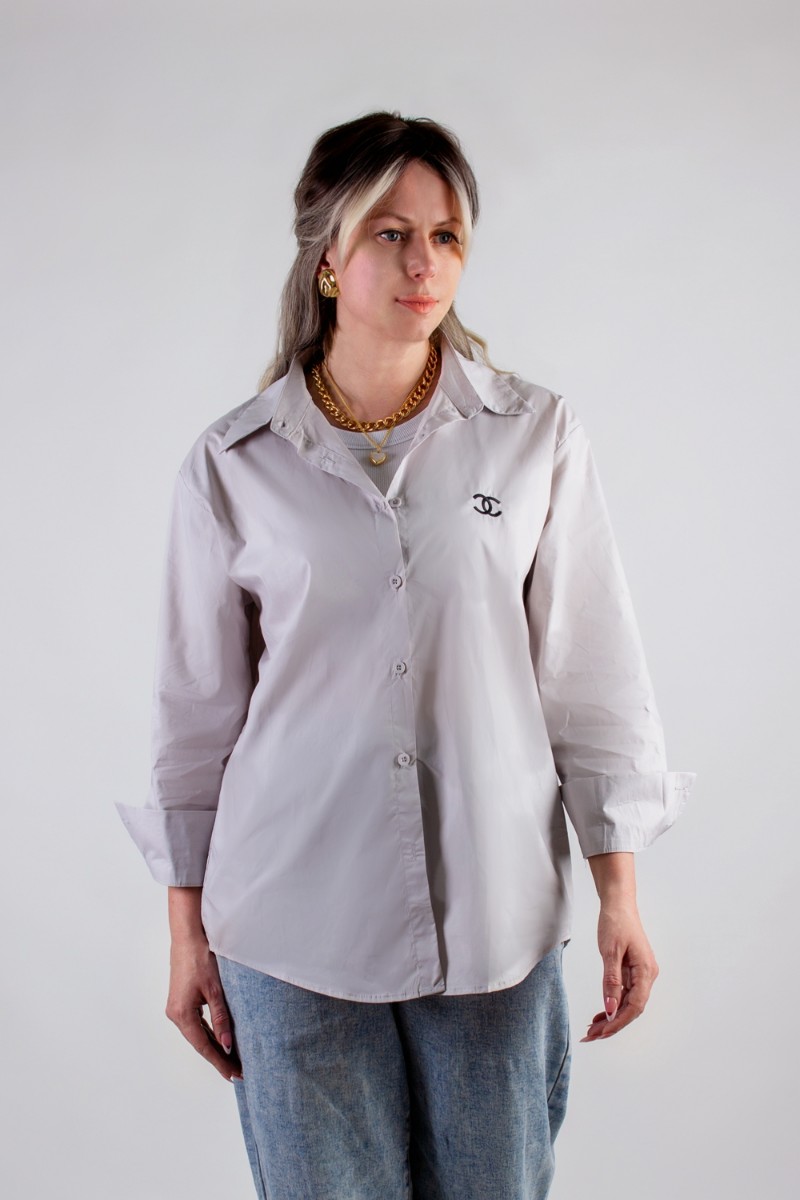 Рубашка женская №055206 коттон (р-ры: 42-50) серо-бежевый