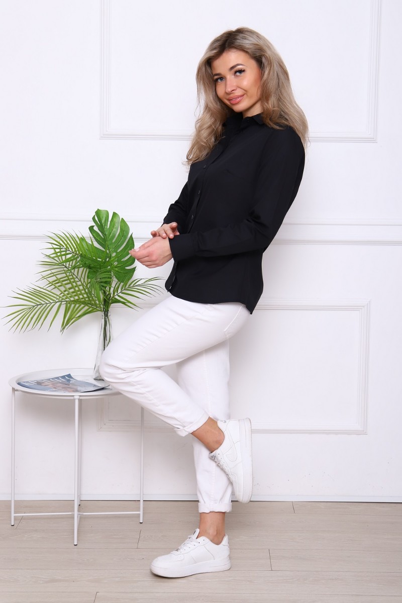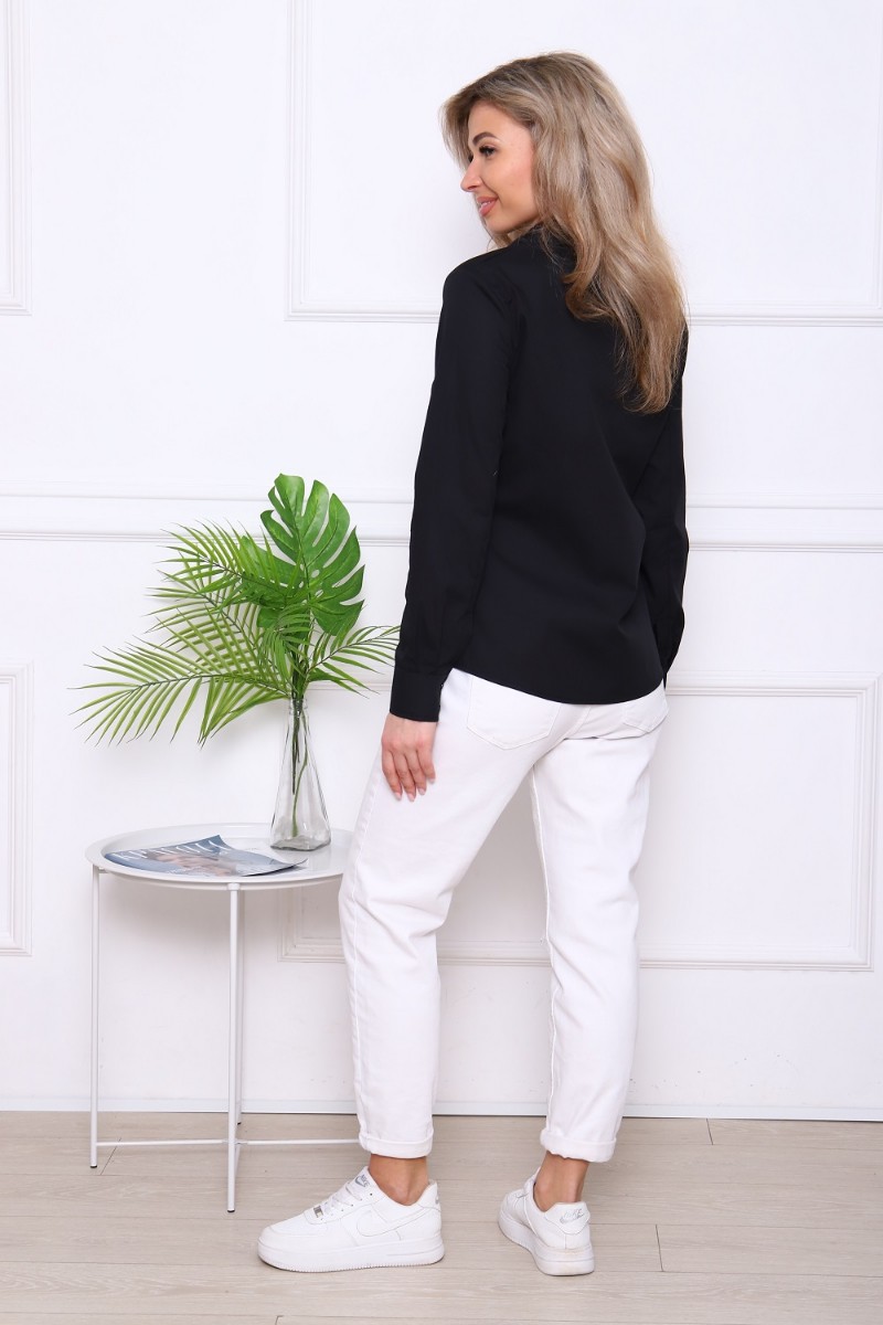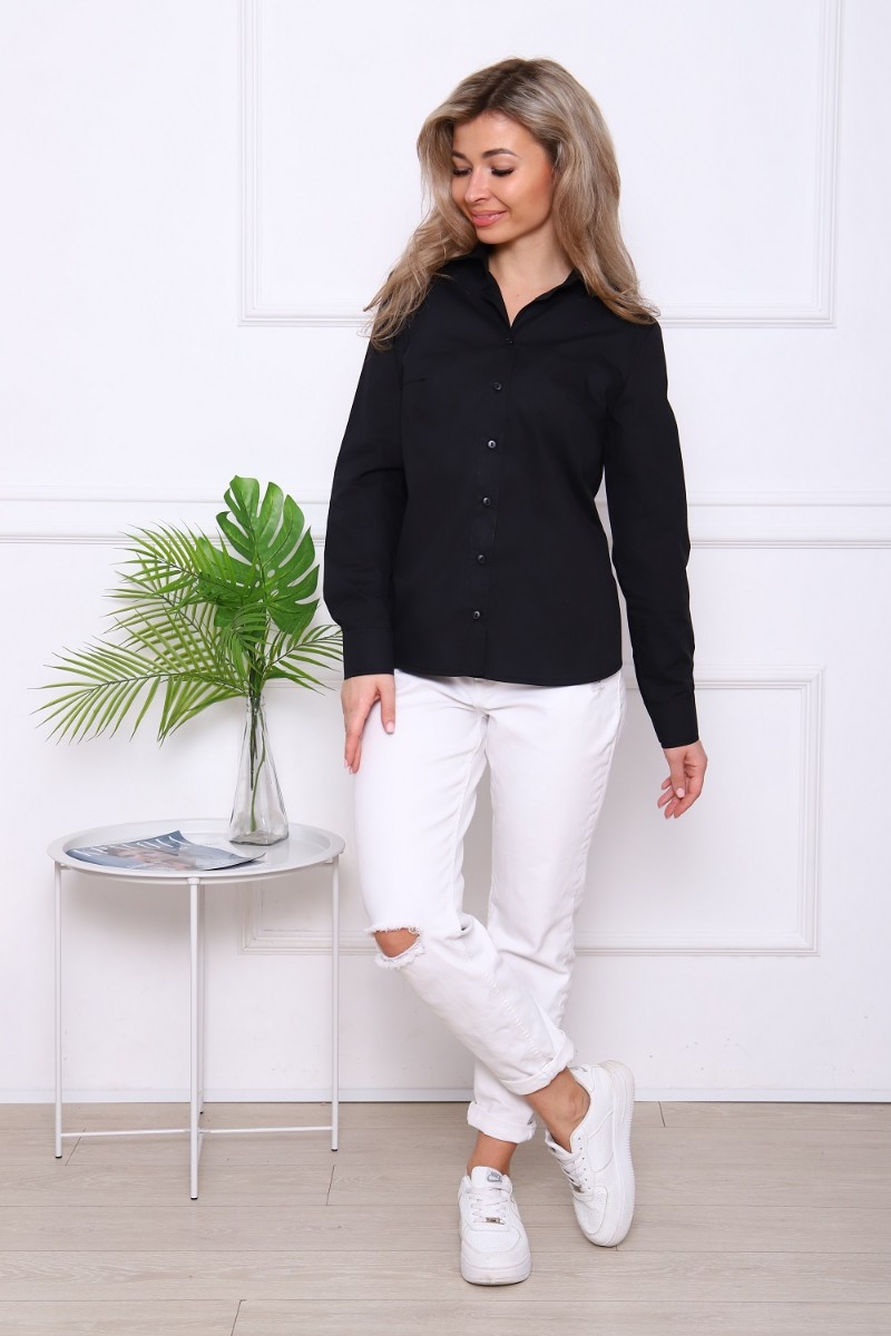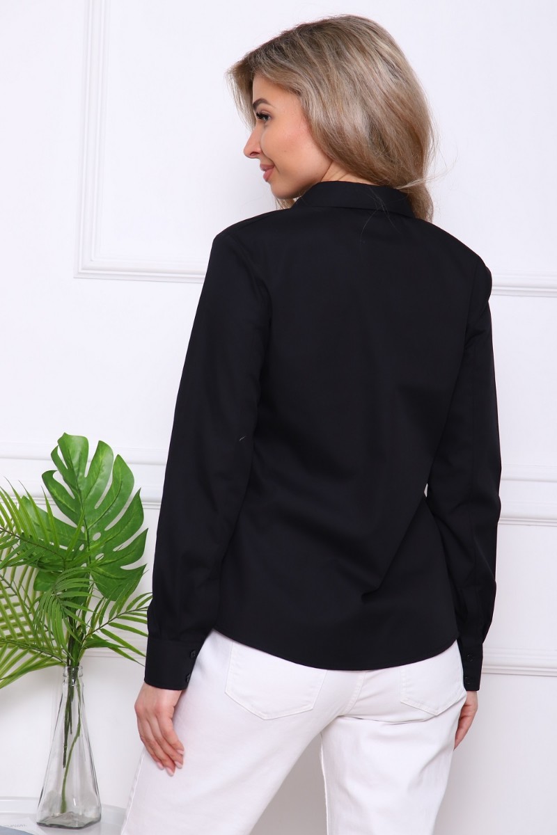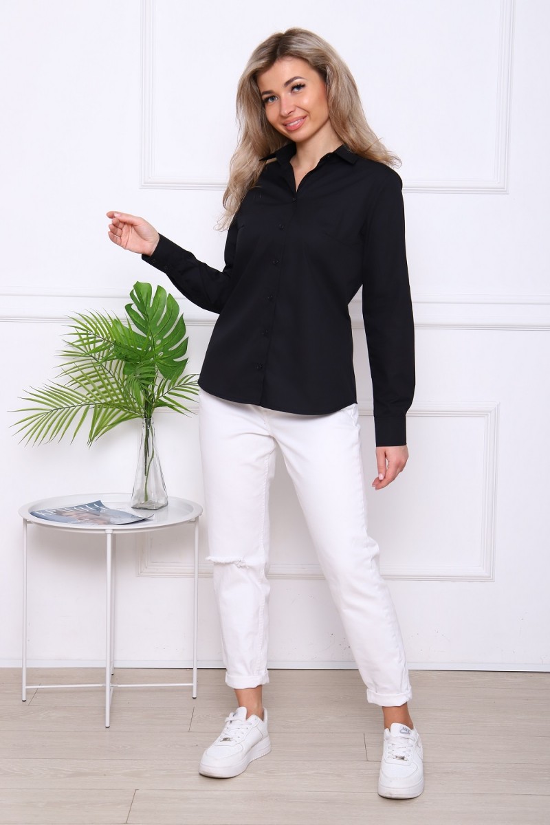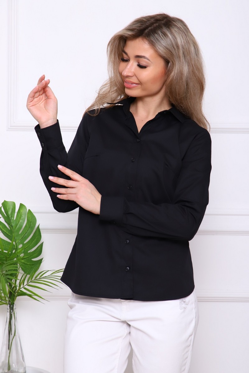 Представляем Вашему вниманию классическую женскую тунику-рубашку с длинными рукавами, закругленным низом полочки и спинки. Нагрудные вытачки и лёгкая приталенность обеспечивают оптимальную посадку и модный силуэт. Черный цвет выглядит дорого, элегантно, всем идёт и легко комбинируется с любыми вещами в гардеробе.