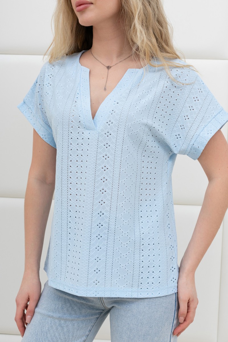 Блузка женская "Дис" фактурный трикотаж (последний размер) голубой 48
