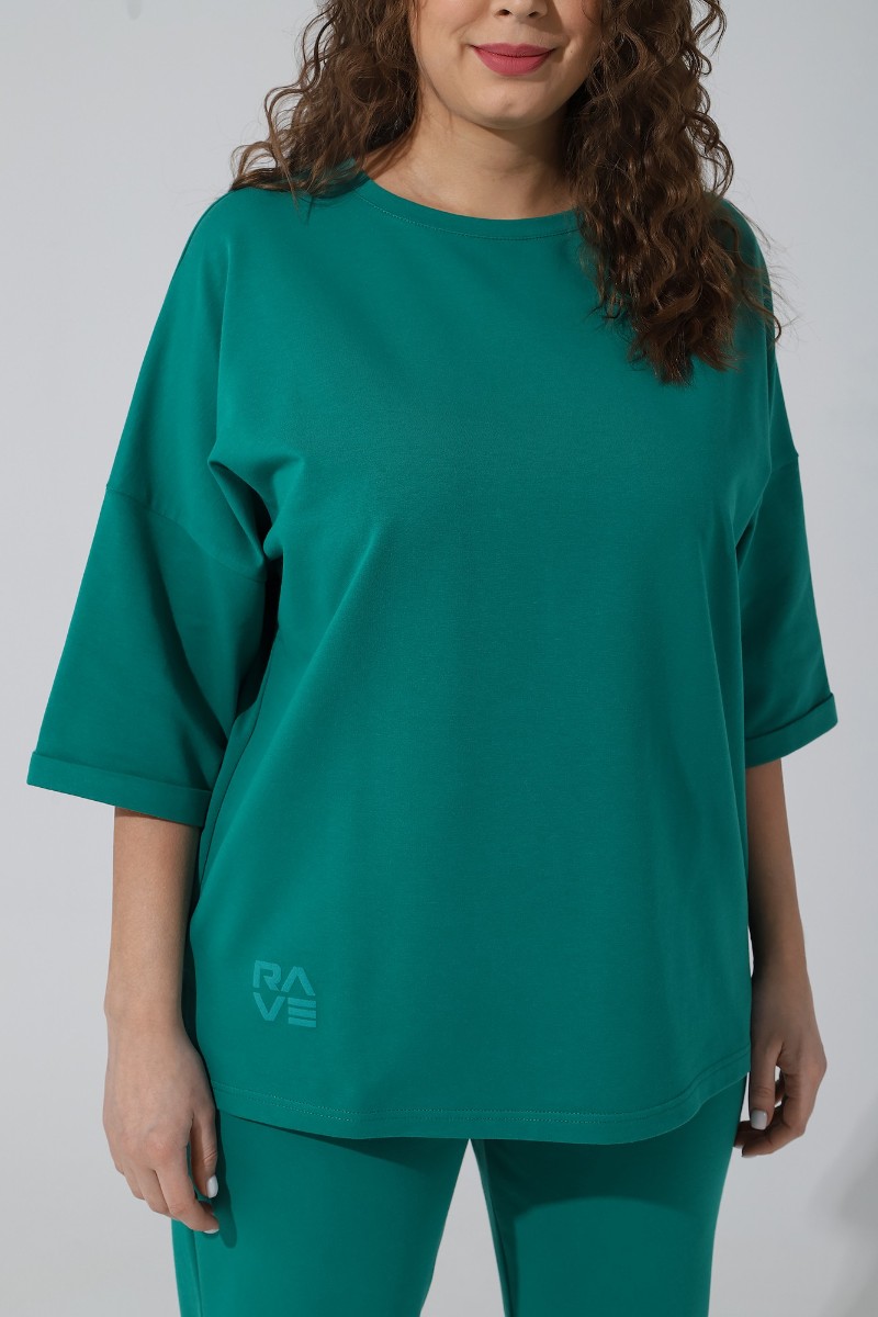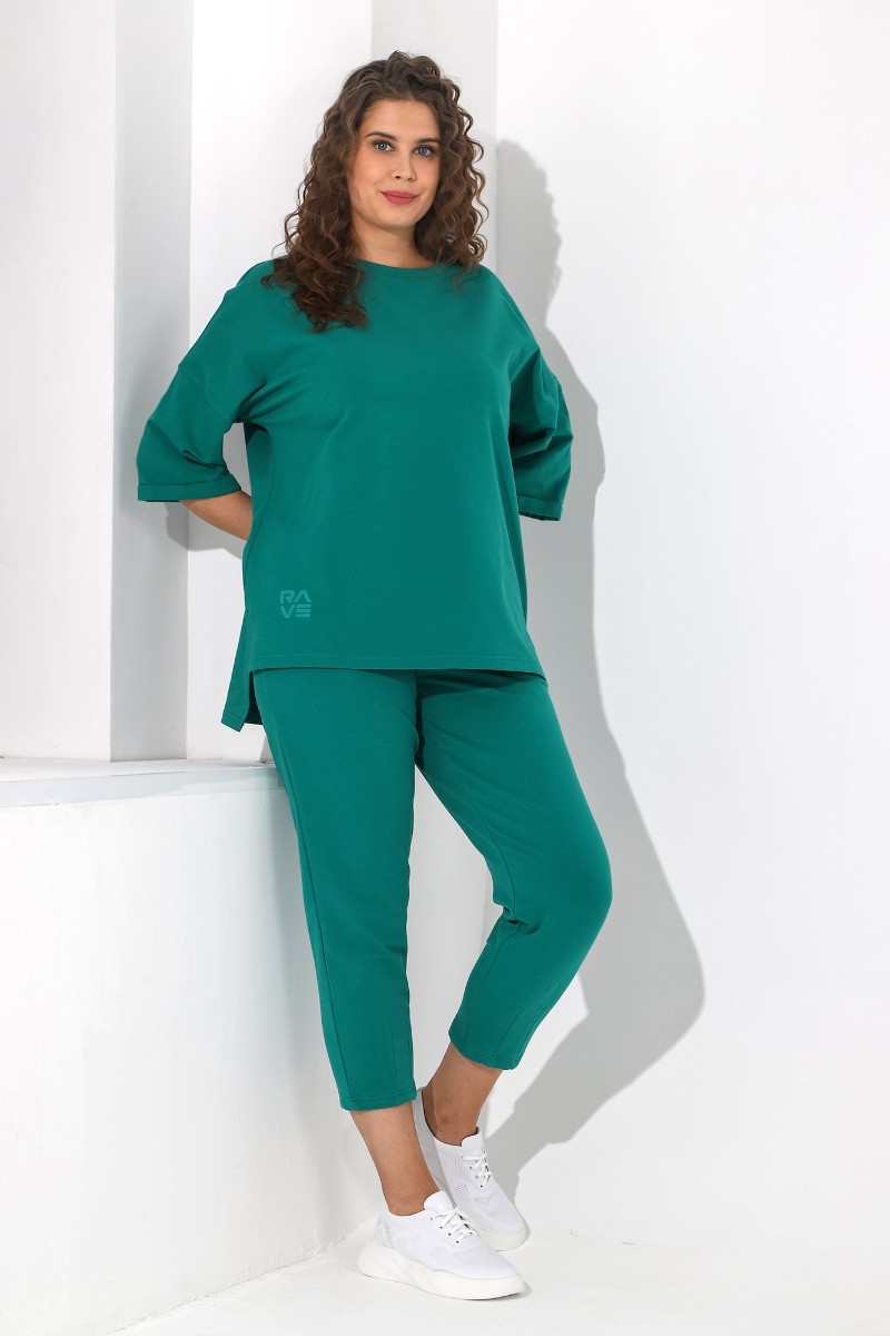 Костюм двойка женский "Рейв-4У" футер 2-х нитка с лайкрой (последний размер) зелёный 50