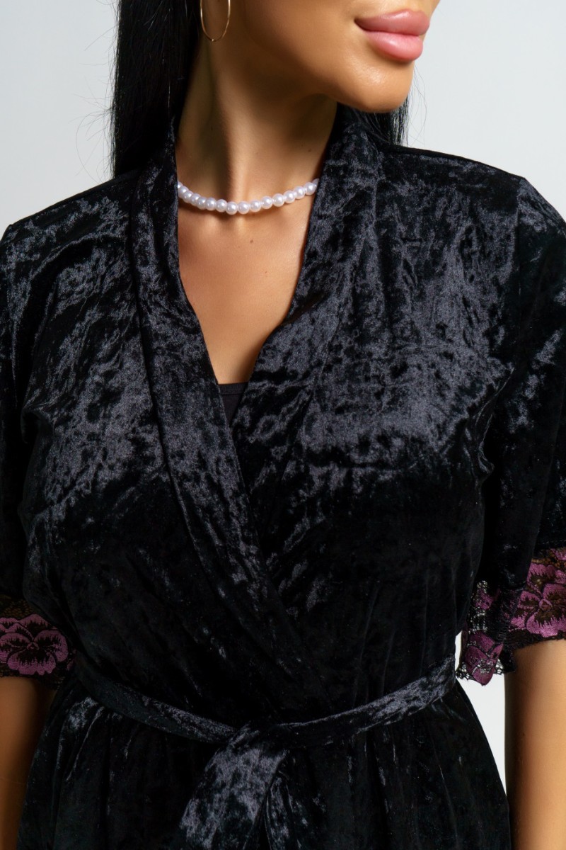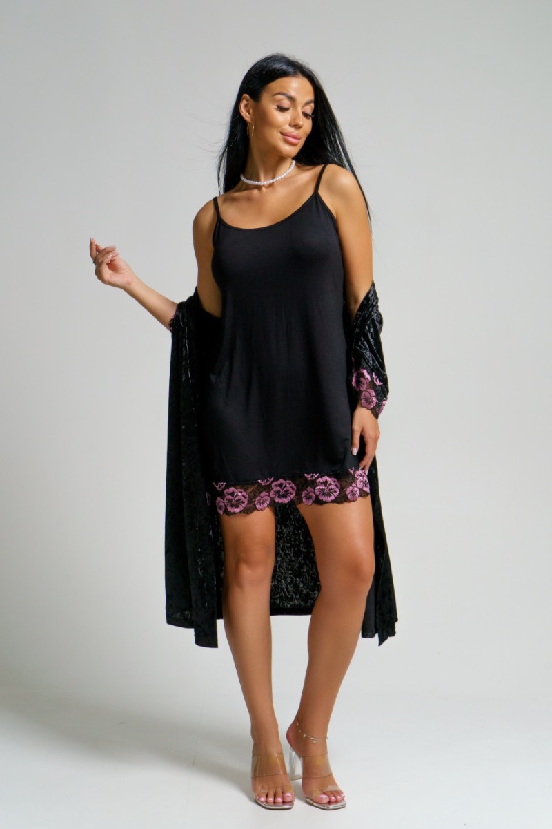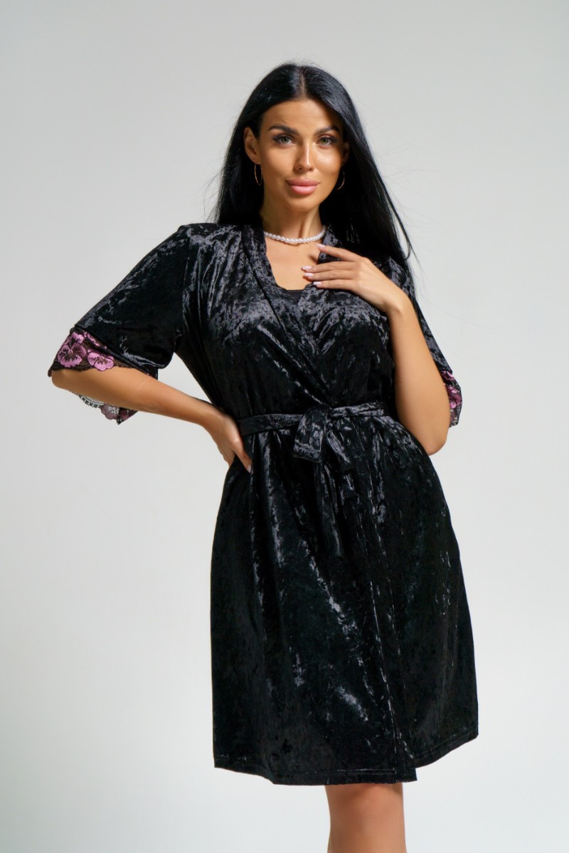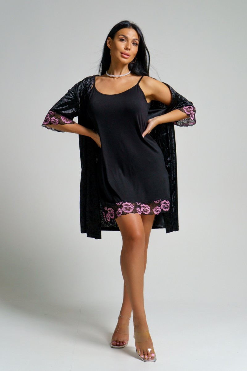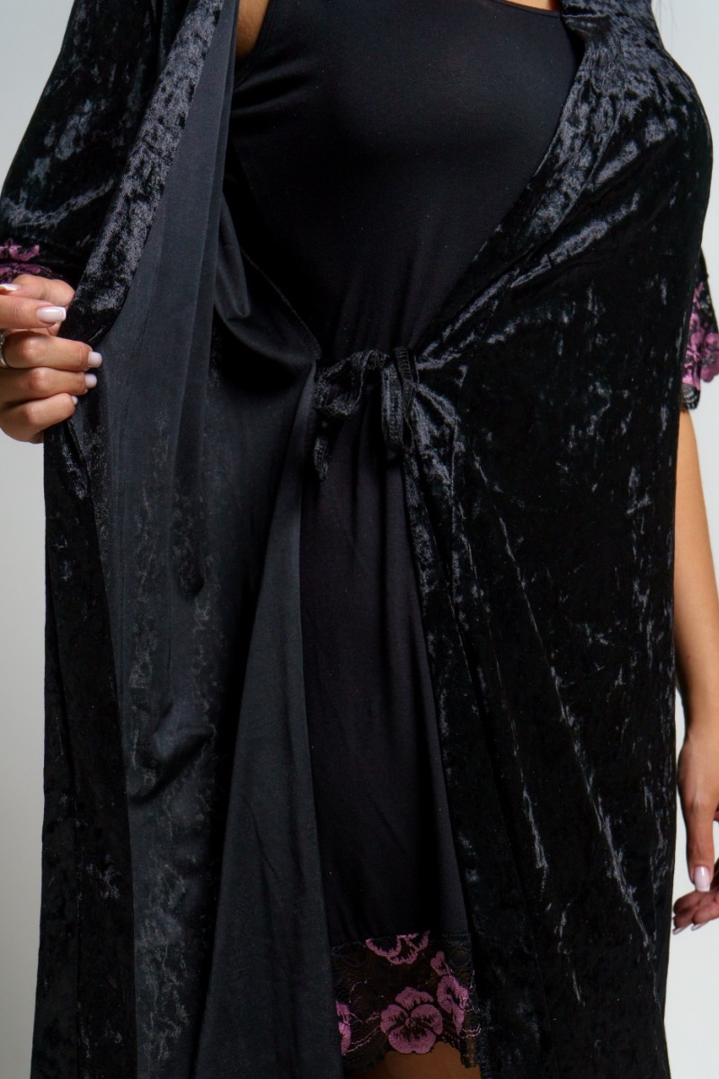Пеньюар двойка женский "Сказка" вискоза+велюр (последний размер) черный 56