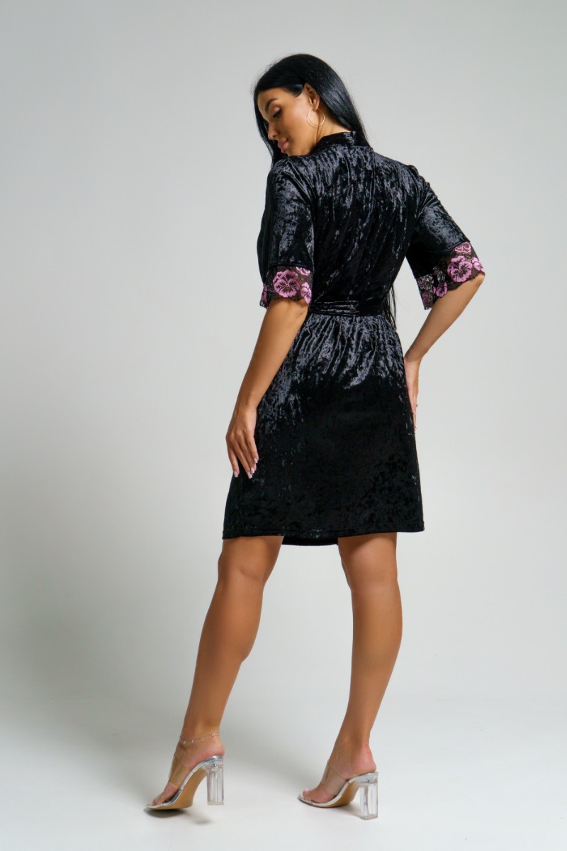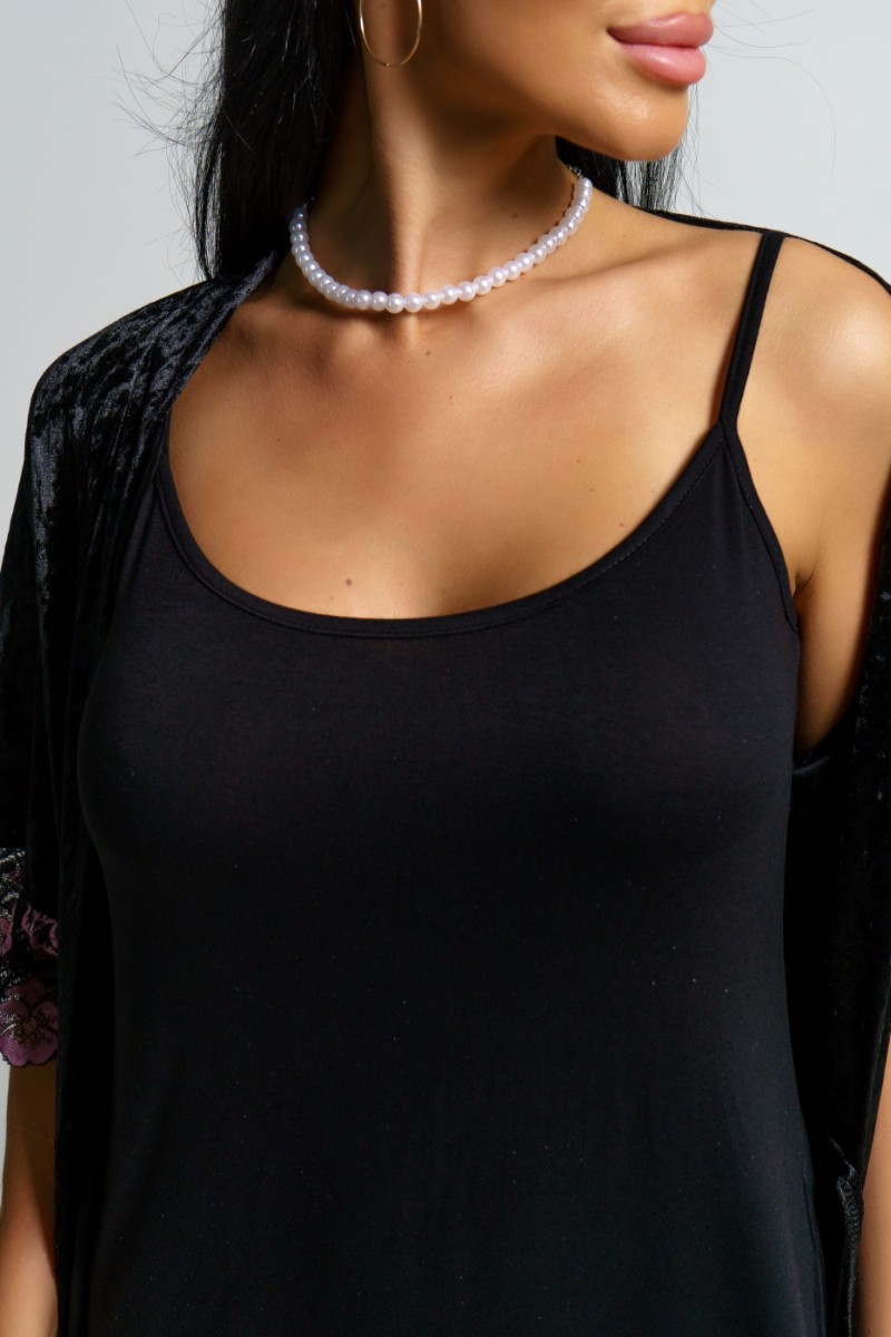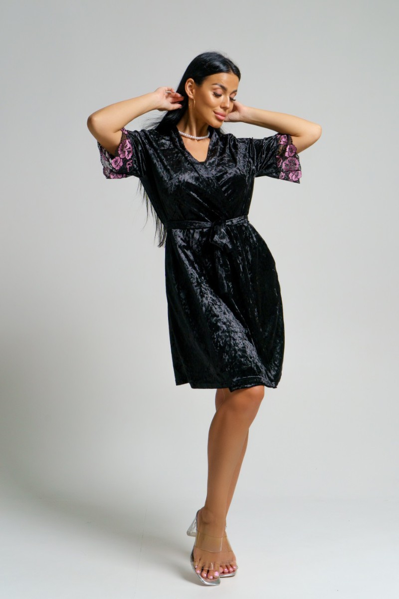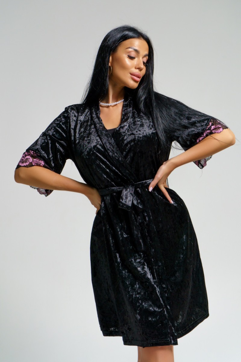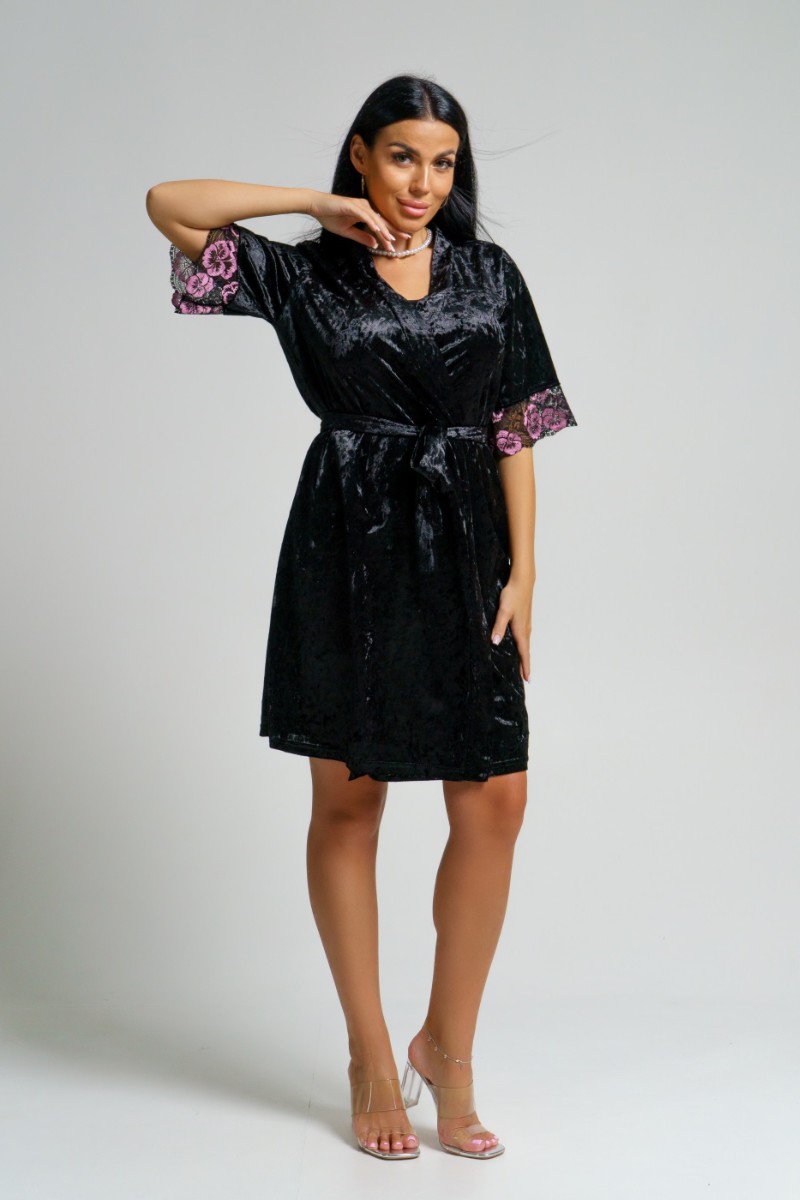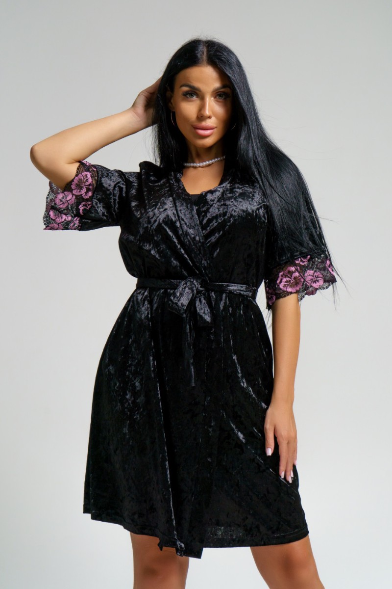 Пеньюар двойка женский "Сказка" вискоза+велюр (последний размер) черный 56