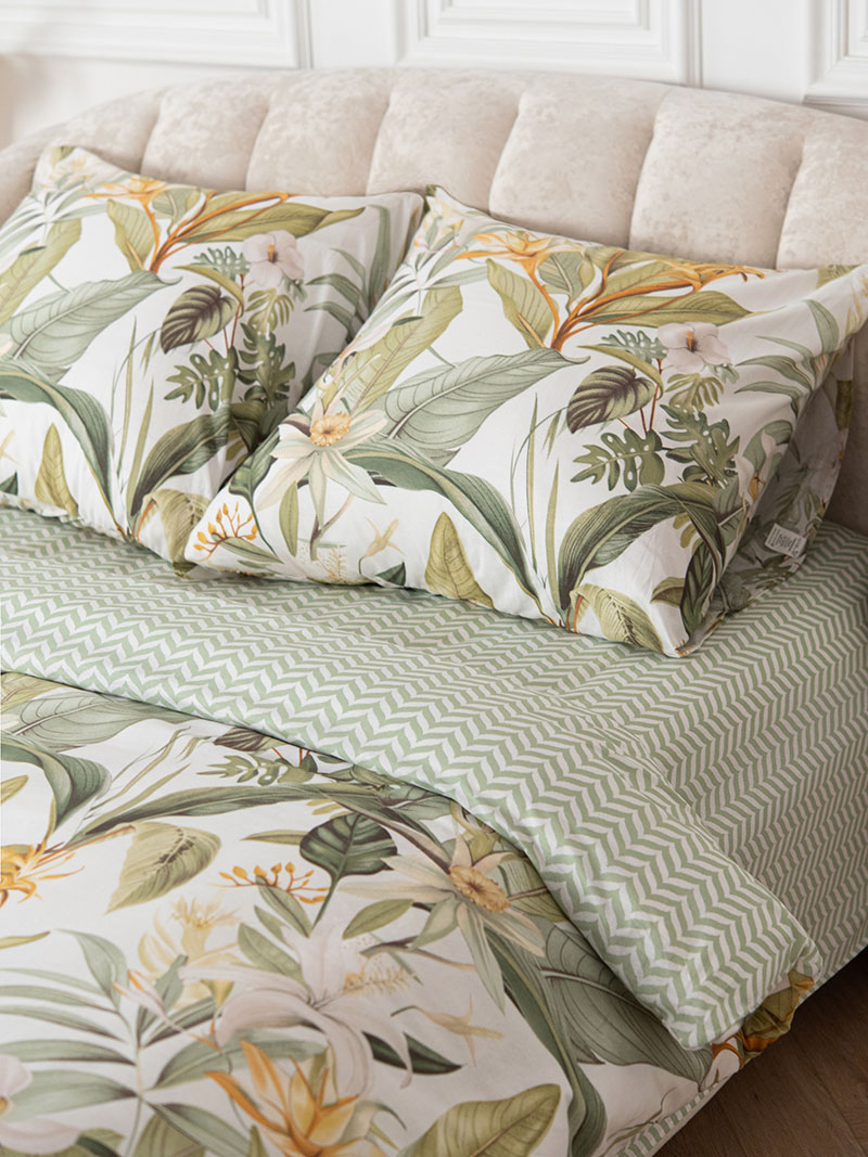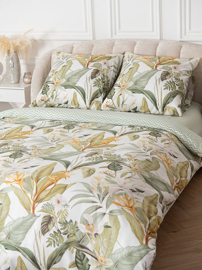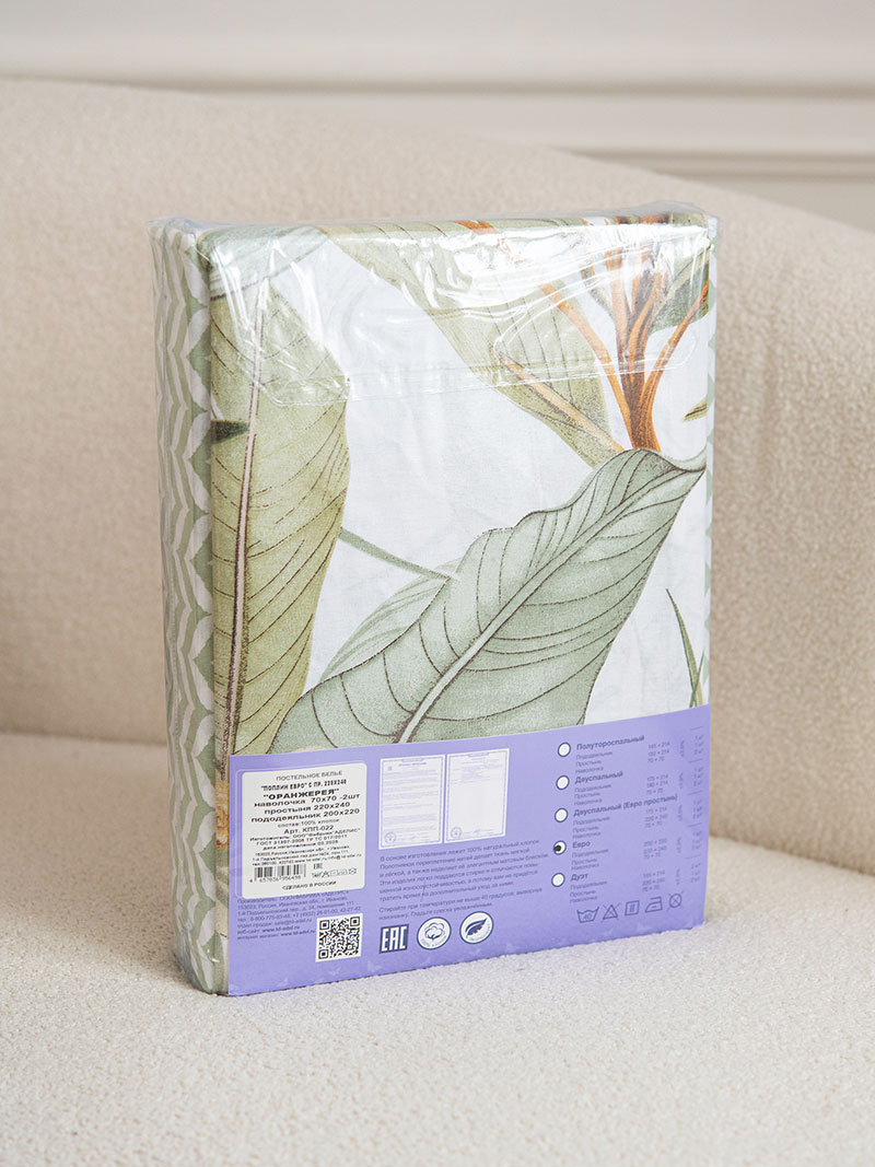 Особенности: наволочки с клапаном, пододеяльник с разрезом по нижнему краю