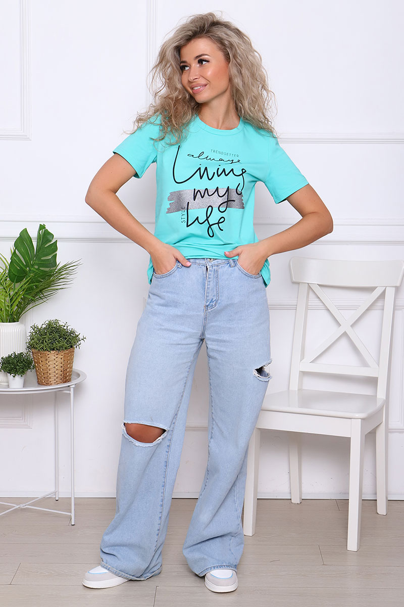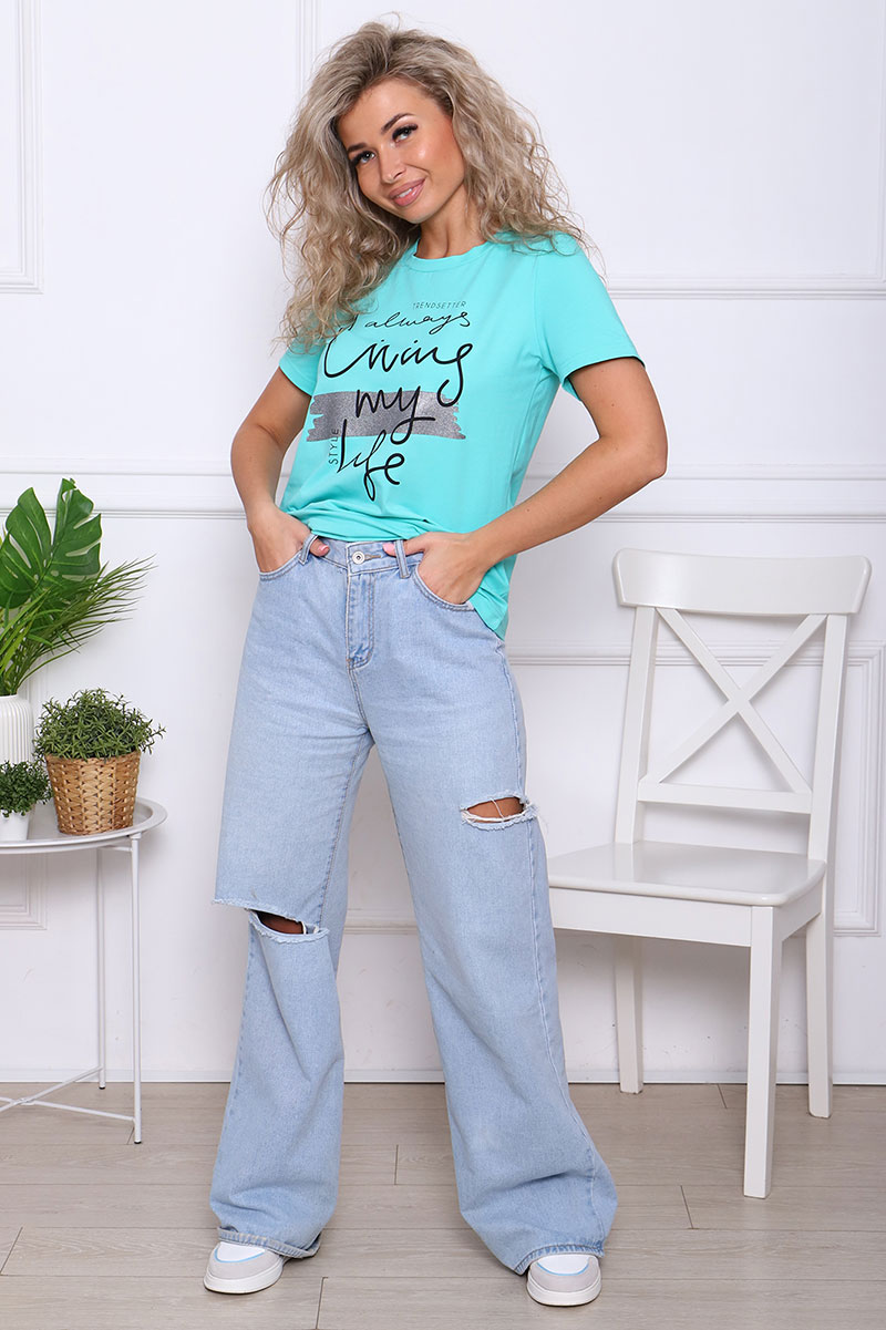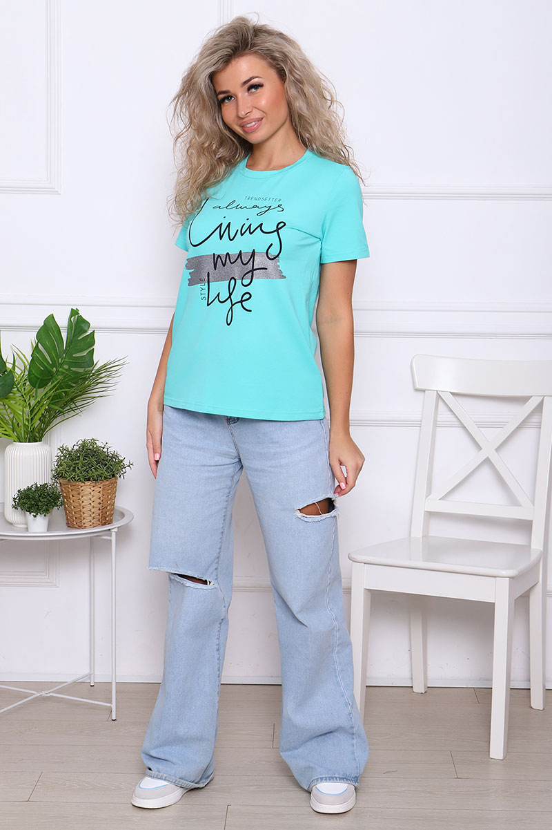 Футболка женская "Элиза" кулирка с лайкрой (последний размер) ментол 46,52,58,62