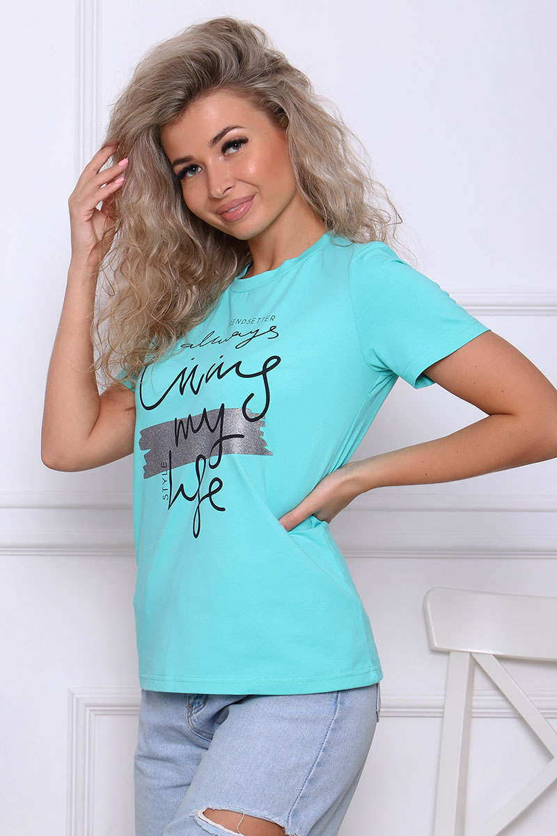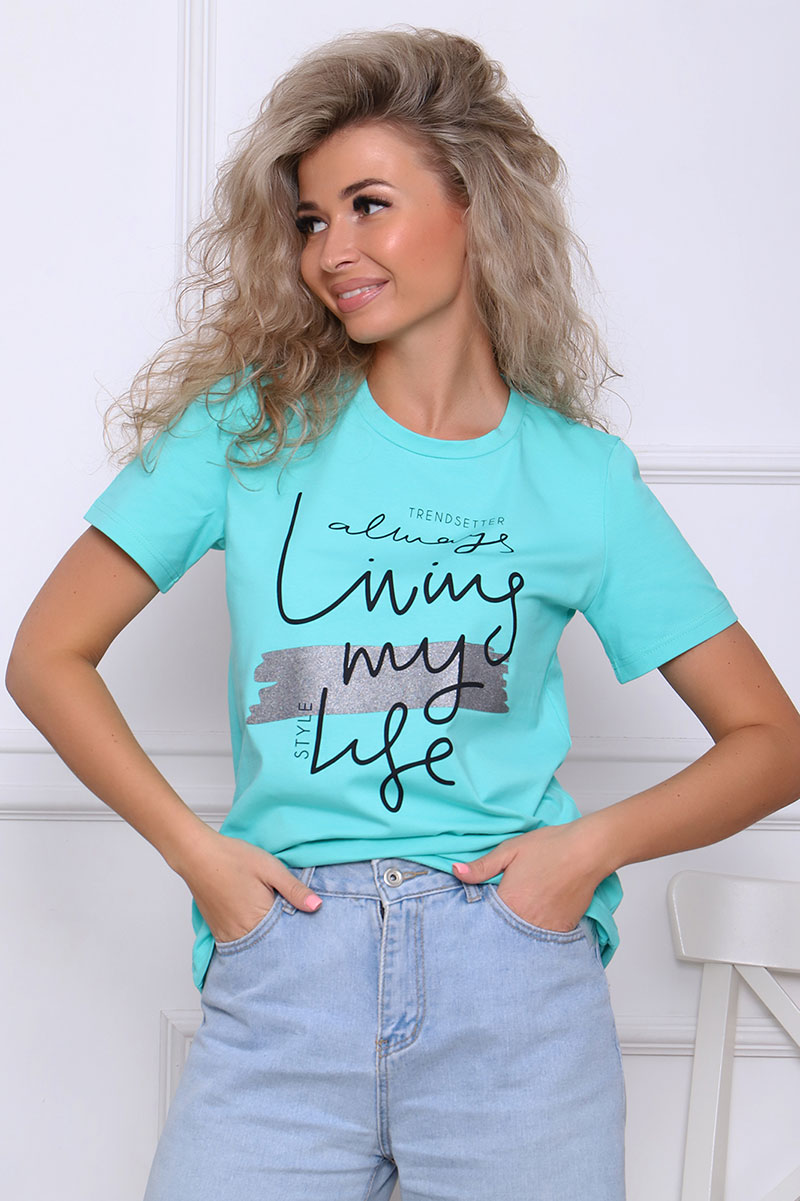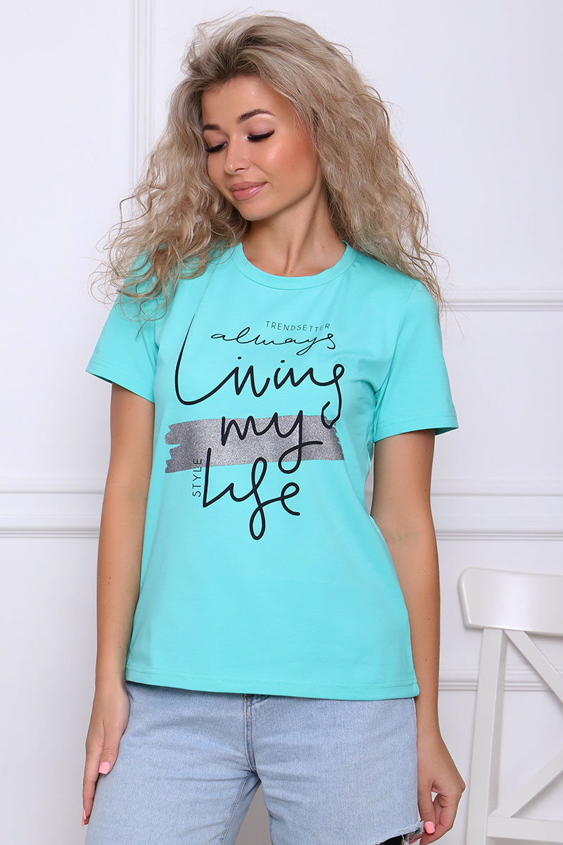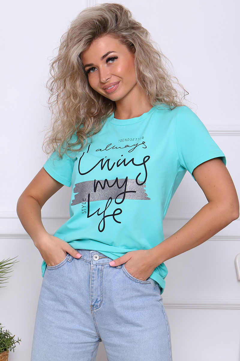Футболка женская "Элиза" кулирка с лайкрой (последний размер) ментол 46,52,58,62