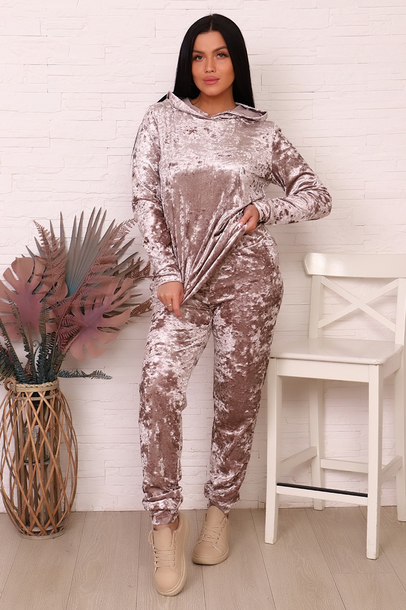 Костюм двойка женский "Гламур" велюр (последний размер) бежевый 52