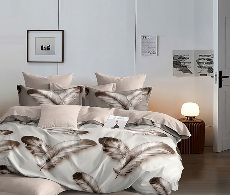 Особенности: комплект выполнен "без оборок", наволочки с клапаном "без ушек". Пододеяльник с разрезом по нижнему краю. Простыня на резинке.