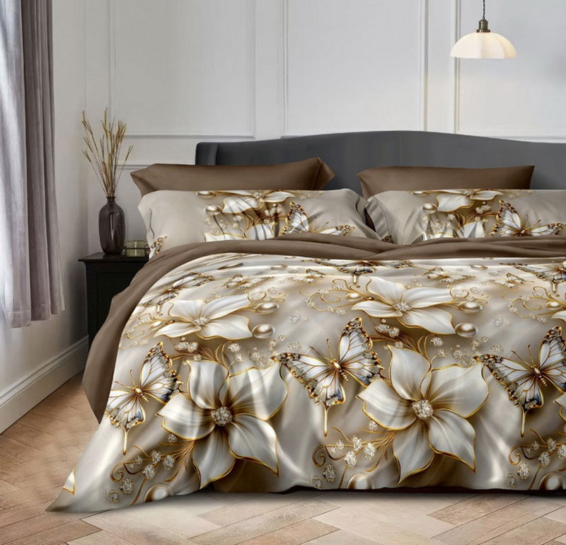 Особенности: комплект выполнен "без оборок", наволочки с клапаном "без ушек". Пододеяльник с разрезом по нижнему краю.