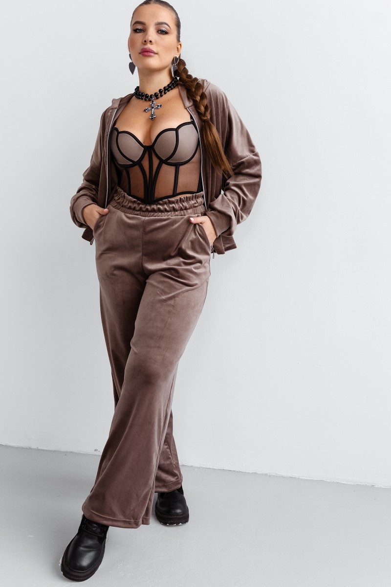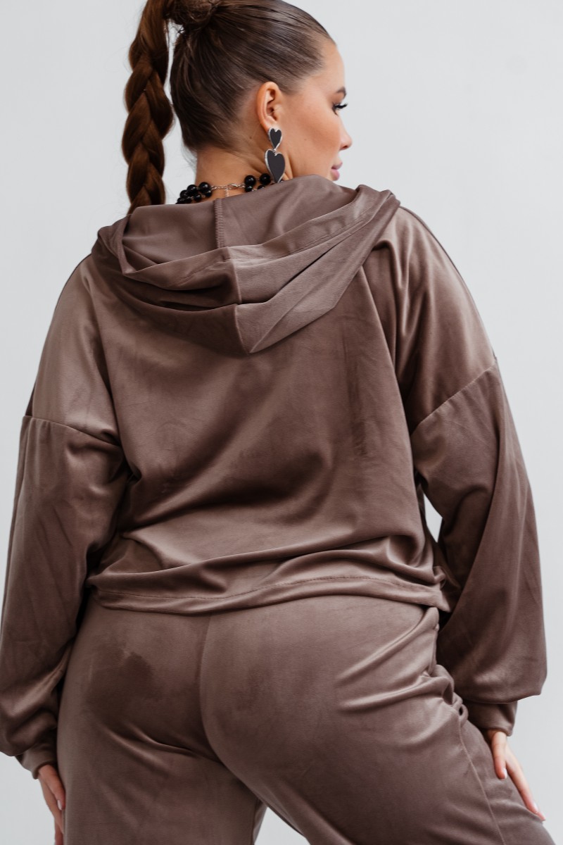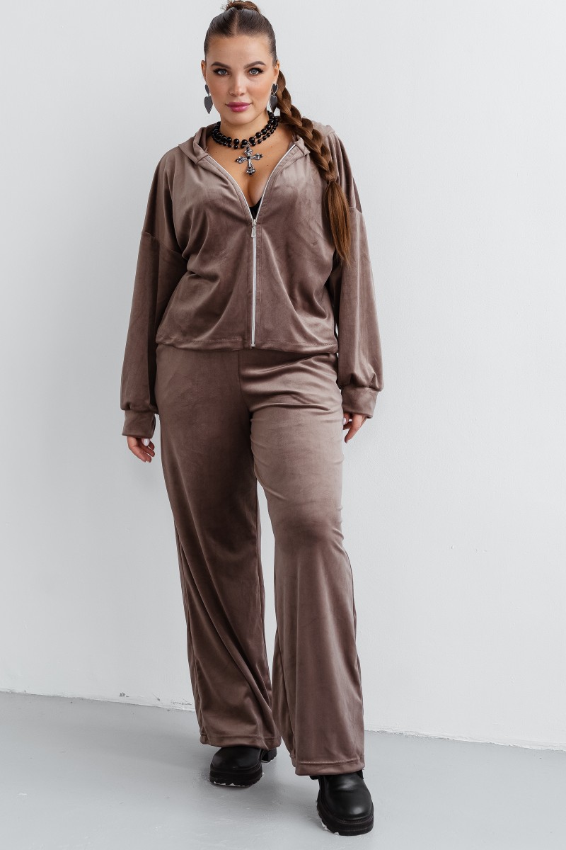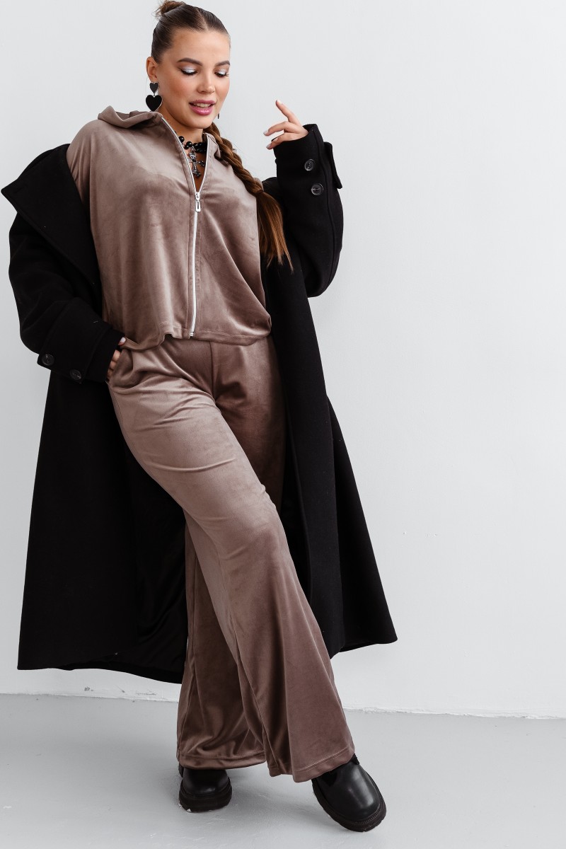 Представляем Вашему вниманию стильный и комфортный теплый костюм из велюра, который станет Вашим любимцем на каждый день! Комплект выполнен из нежной ткани, приятной к телу и не требующей особого ухода. Такой брючный костюм, с джоггерами и кофтой, идеально подойдет для активного отдыха, занятий спортом, прогулок или просто для уютных вечеров дома. Благодаря эластичному и немнущемуся материалу, он прекрасно садится по фигуре, обеспечивая свободу движений. Гладкая фактура велюра, придает ему модный и современный вид. Модель оверсайз, с прорезными карманами дополняет удобство и практичность. Велюровая двойка выполнена из хлопка и полиэстера, что гарантирует его долговечность и износостойкость.