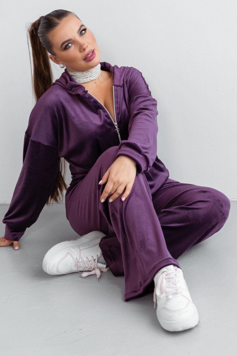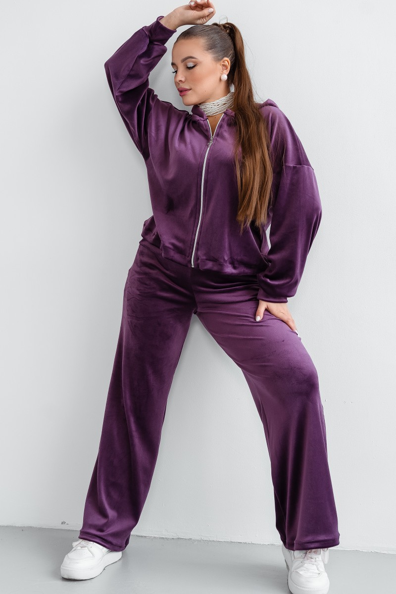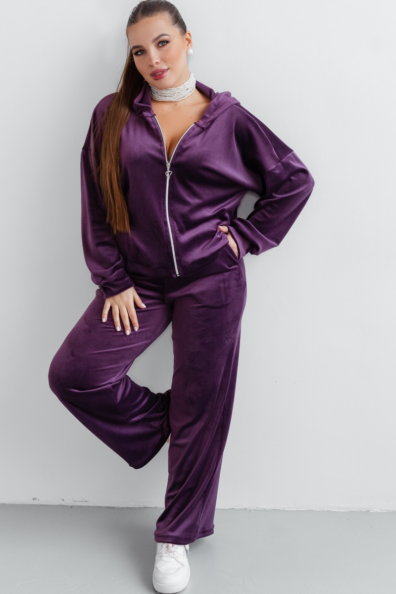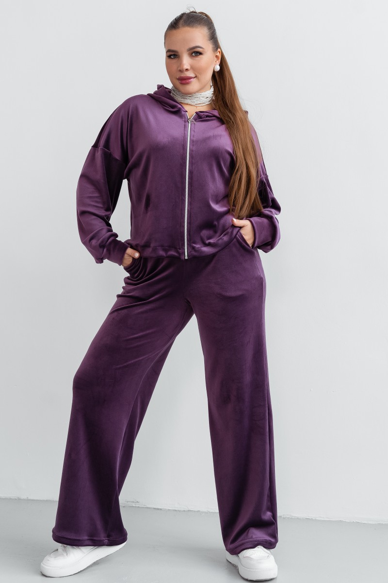 Костюм двойка женский КС-077ФР/БАК велюр (последний размер) баклажан 56,58