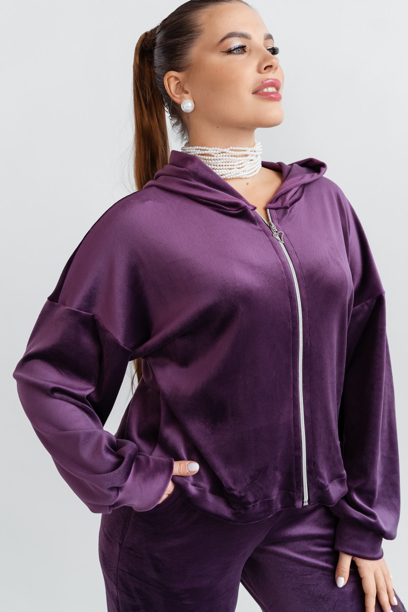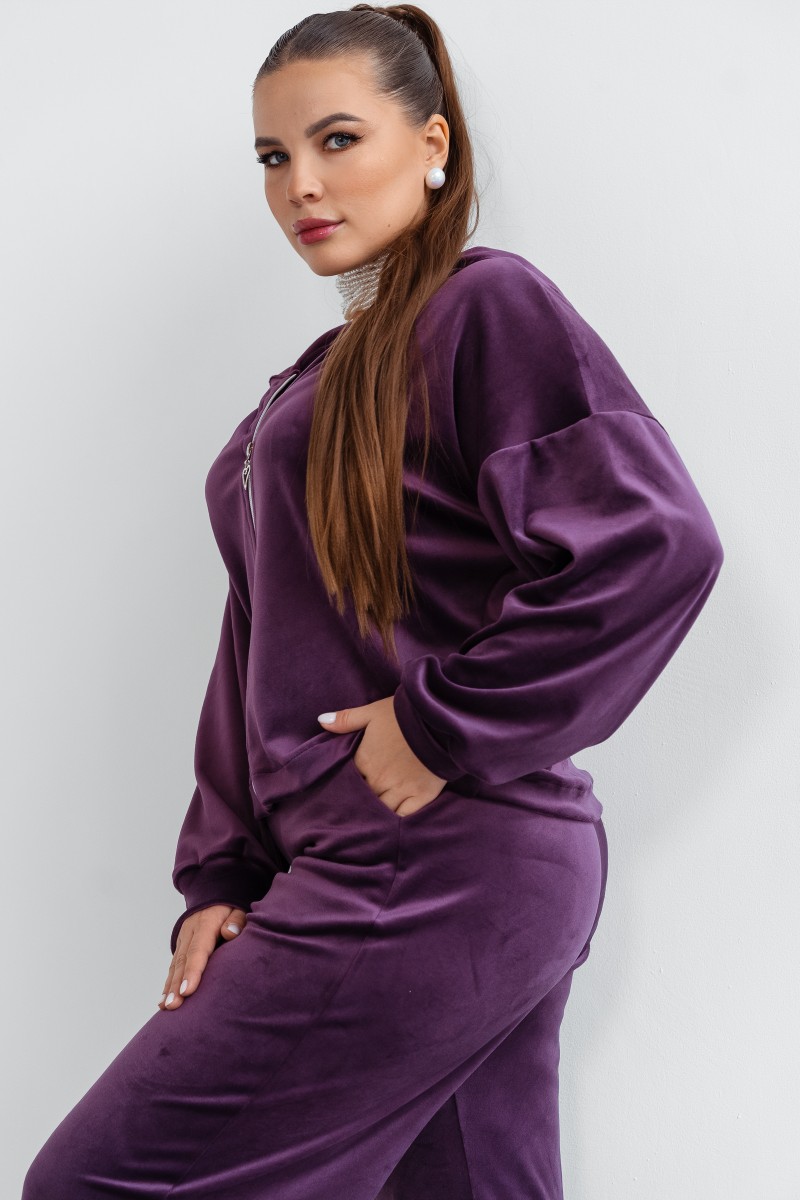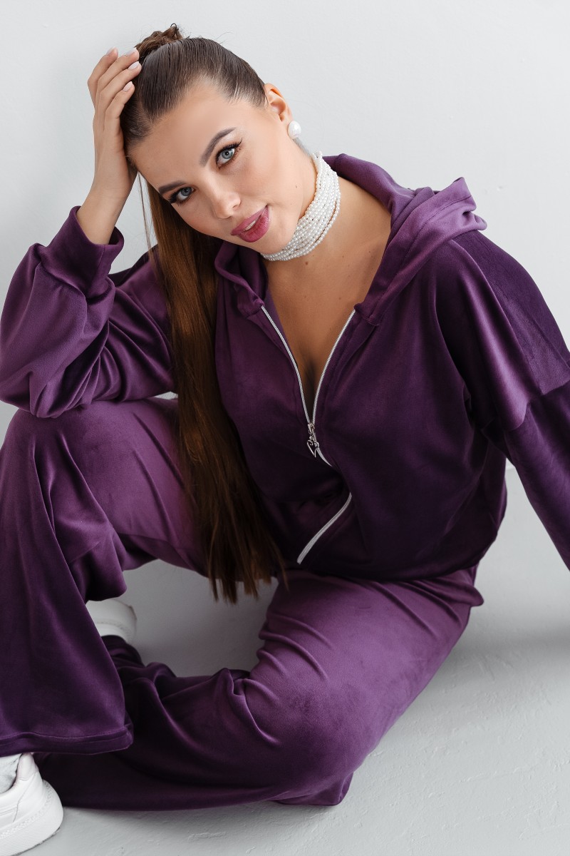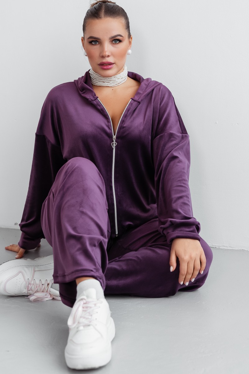 Костюм двойка женский КС-077ФР/БАК велюр (последний размер) баклажан 56,58