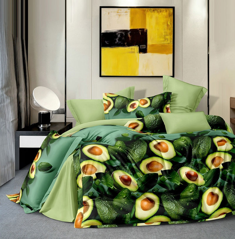 Особенности: комплект выполнен "без оборок", наволочки с клапаном "без ушек". Пододеяльник с разрезом по нижнему краю. Простыня на резинке.