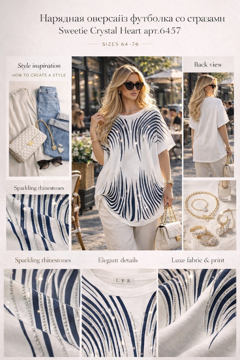 Crystal Flow Luxe — это не просто футболка, это ваша уверенность в собственной неотразимости. Заказывайте прямо сейчас и сияйте каждый день!