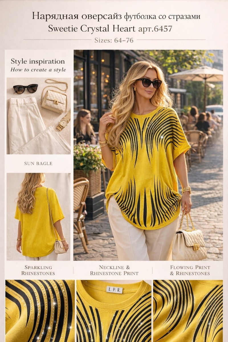 Представляем Вашему вниманию нарядную оверсайз футболку со стразами Crystal Flow Luxe — откройте для себя идеальное сочетание комфорта и стиля с нашей новинкой.
